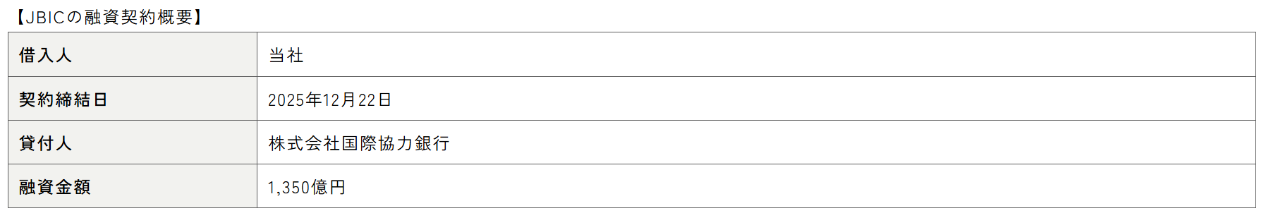 今回の融資は、LBC社の株式取得に必要な資金を安定的かつ長期的に確保することを目的としており、日本企業の海外事業展開を支援するJBICの理念と、グローバルにネットワークを構築する三井住友銀行の取り組みが一致したことで実現に至りました。当社は、今後もグループ経営計画「BLUE ACTION 2035」を軸に市場動向などを勘案しながら、財務戦略の最適化に努めてまいります。