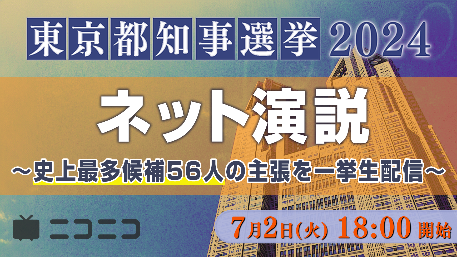 【東京都知事選2024】ネット演説〜史上最多候補56人の主張を一挙生配信〜