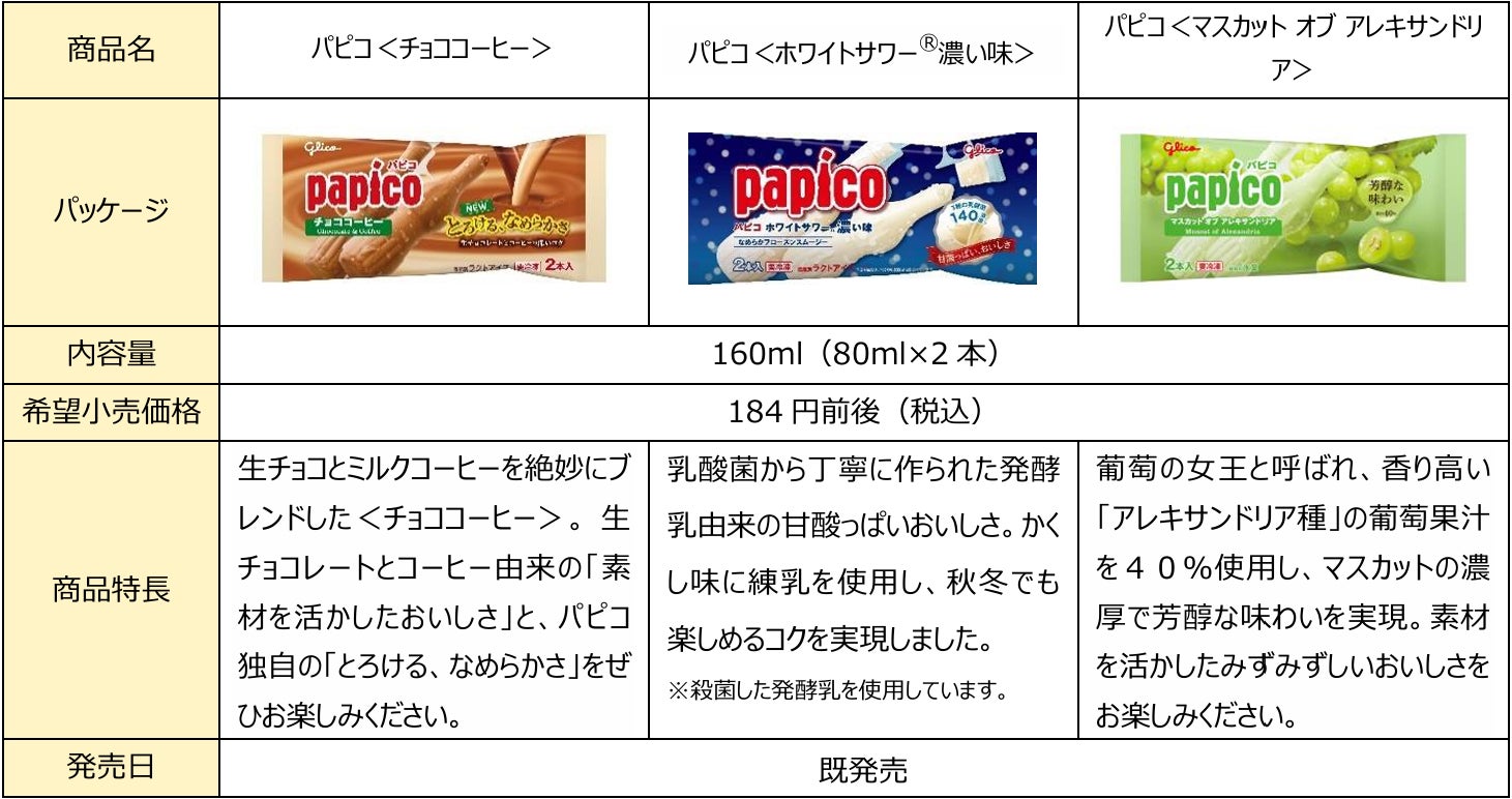 「パピコ」は1974年の発売以来長く愛されてきたフローズンスムージーです。なめらかな食感と冷たさで心身をリフレッシュさせることで、人々の前向きな気持ちをサポートしたい、という思いで活動しています。なめらか食感が楽しめる商品や、ひんやり爽やかで濃厚なフルーツ感を楽しめる商品など、フレーバーによって素材や食感にこだわっていることも大きな特長です。