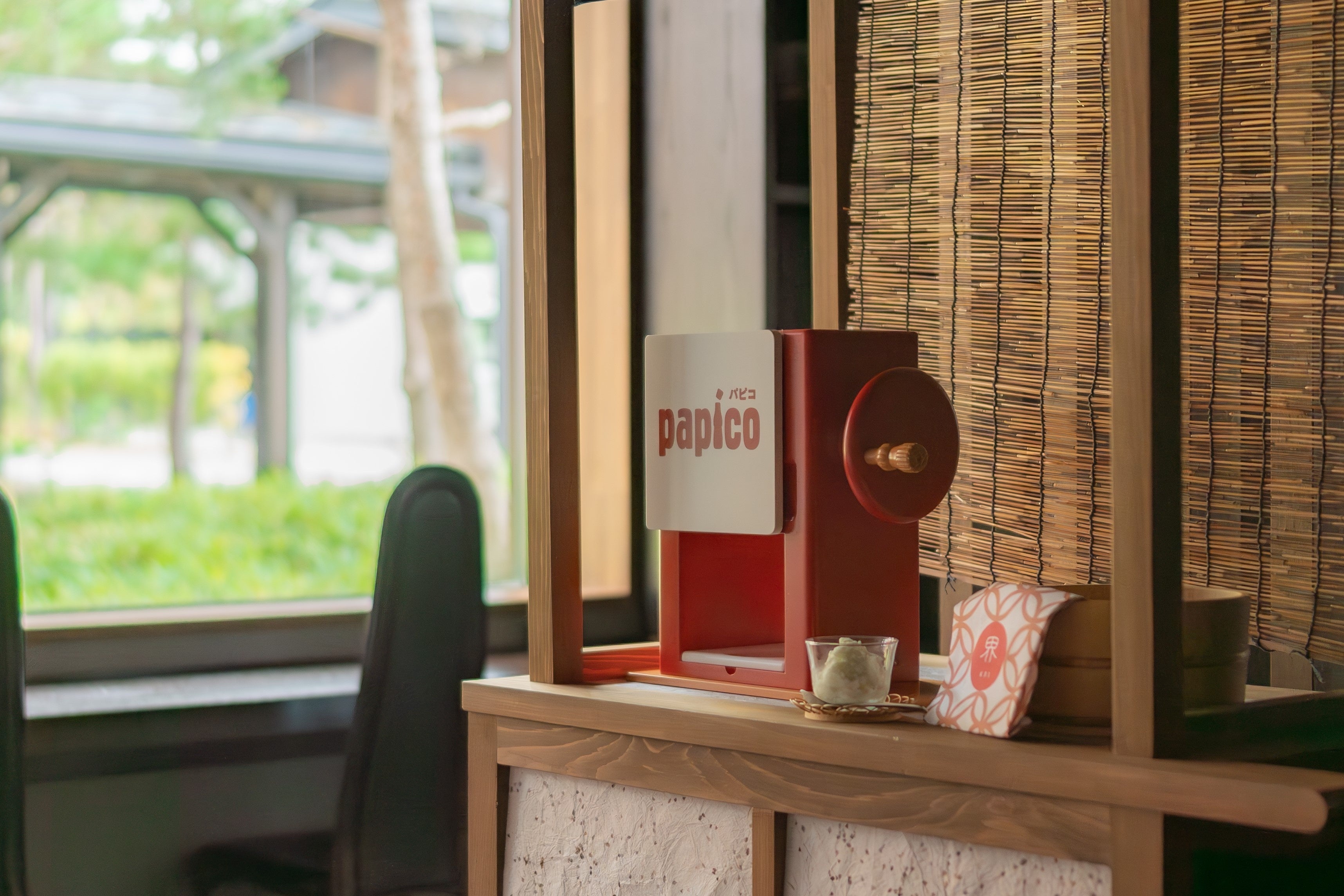 「パピコサーバー」を使って、なめらかな「パピコ」を味わえます。