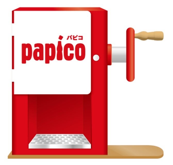 「パピコサーバー」とは、今回のイベントのために特別に制作した、「パピコ」専用絞り機です。「ミニパピこたつ」で適度に解凍した「パピコ」を、「パピコサーバー」にセットし、ハンドルを回すとなめらかな「パピコ」が絞り出され、カップのアイスクリームのようにスプーンですくって味わうことができます。普段は容器を直接吸ったり押し出したりして味わう商品ですが、「パピコサーバー」を使うことで、楽しく、ちょっと贅沢な気持ちが味わえます。