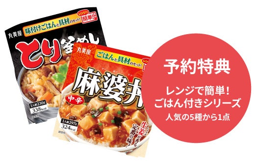 事前にご予約いただいた方には、「丸美屋 レンジで簡単!ごはん付きシリーズ」をプレゼント!