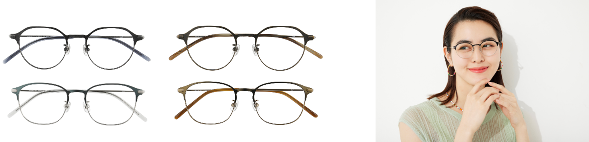ウィメンズ向けのライン「SUMMER TREND」は見た目もかけ心地も軽く、これまでより少し小ぶりなサイズ感のメタルフレームや薄めのカラーリングが目を引く涼やかなクリアカラーのプラスチックフレームなど、さらりと夏顔になれるアイウェアが豊富なバリエーションで揃います。
