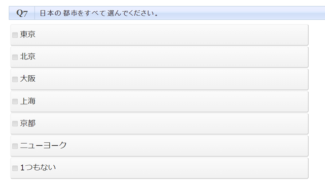 都市の選択肢から、日本の都市を全て選ばせる設問