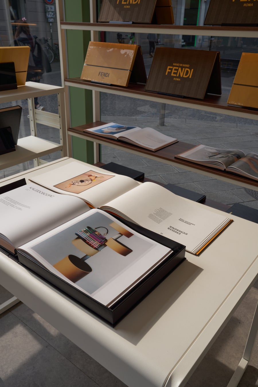 特設コーナー、ウィンドウディスプレイ、トーテムなどを設置し、ローマに拠点を置くメゾンと、その象徴的なバッグの物語を綴った2冊の書籍、「ハンド・イン・ハンド(FENDI Baguette hand in hand)」と「ピーカブック(FENDI Peekaboo-K)」が販売されます。フェンディの歴史と文化を称える、特別な試みとなります。
