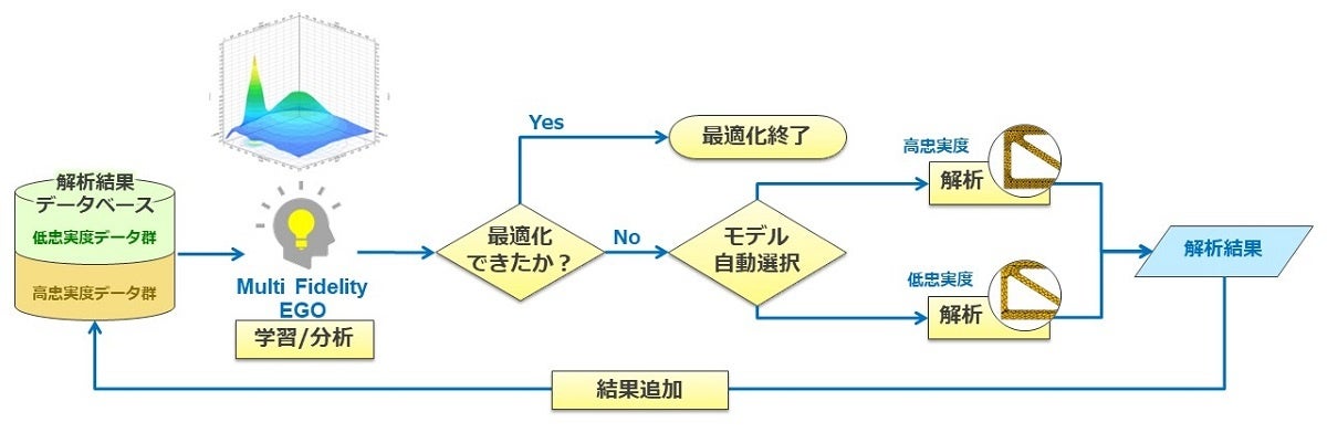 計算コスト削減を目的に開発された新最適化アルゴリズム「Multi-Fidelity EGO」で、計算精度と計算コストのトレードオフを解消