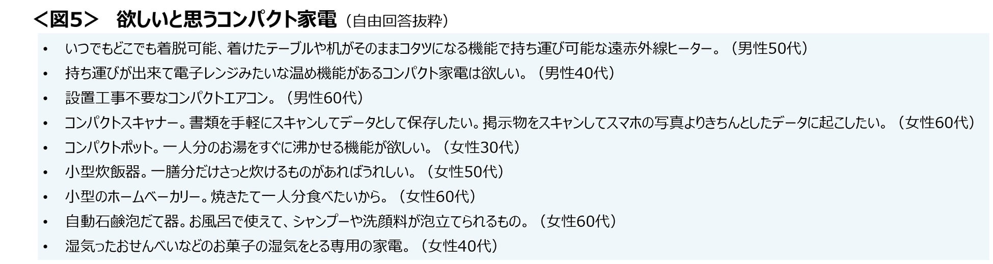 ※コンパクト家電:通常の家電よりサイズが小さいもの、一人用のもの、機能が限られているもので聴取