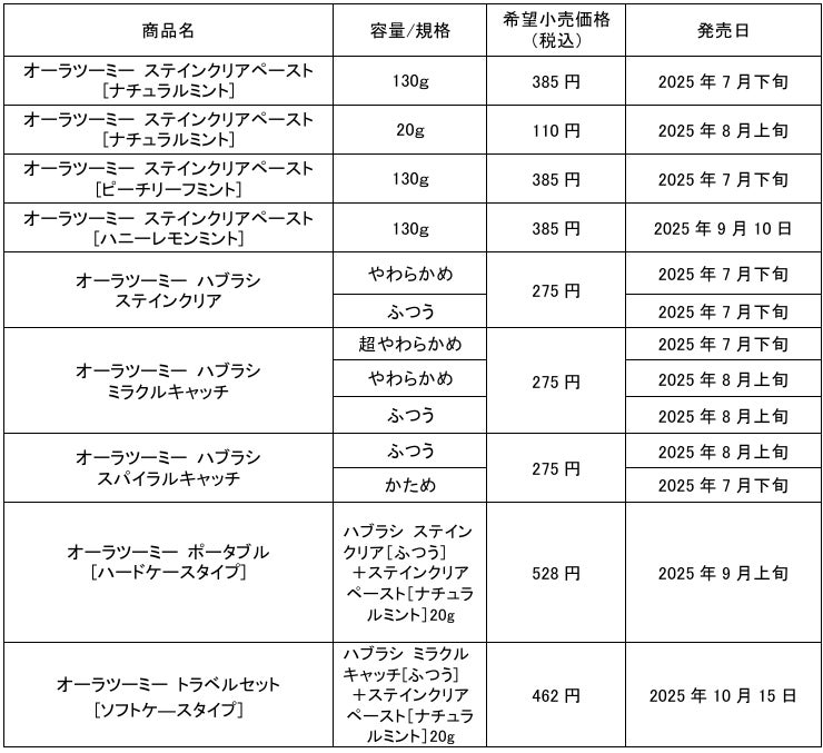 また、中身の見えないハードタイプケースが好評のハブラシ・ハミガキセット「オーラツーミー ポータブル」には、現在のブルー・ホワイト・ピンクの3色に加え、新色パープルを発売します。オーラツーは、今後も生活者のみなさまの日常に彩りを与え、豊かなオーラルケア時間を提案してまいります。