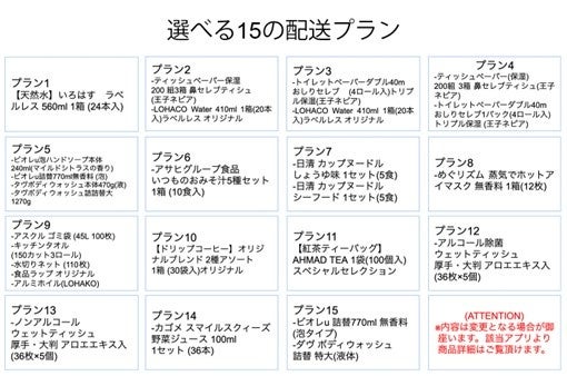 ・注文は、15種類のプランの中から、1種類のプランを選択いただけます。