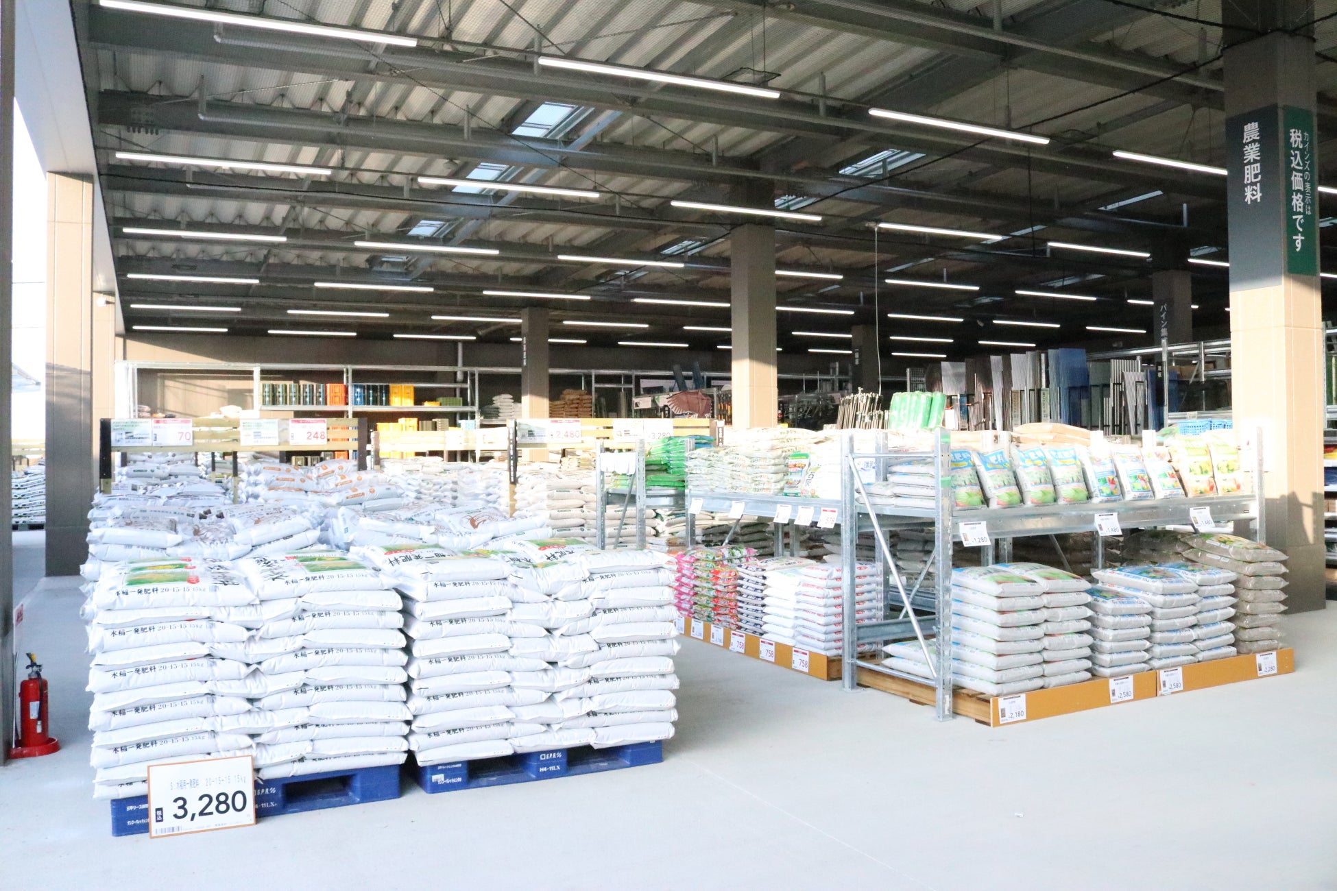 これまで別館としていた資材売場を本館に統合し、ワンフロア化を実現。店舗の外に出ず本館と資材館の往来ができるようになりました。さらに、屋外の園芸売場では下屋を広く設置しました。天気を気にせず、快適にお買い物しやすい環境を整えました。