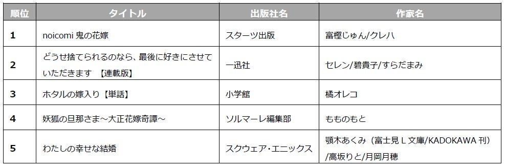 1.「コミックシーモア 2023年上半期ランキング」ジャンル別TOP5