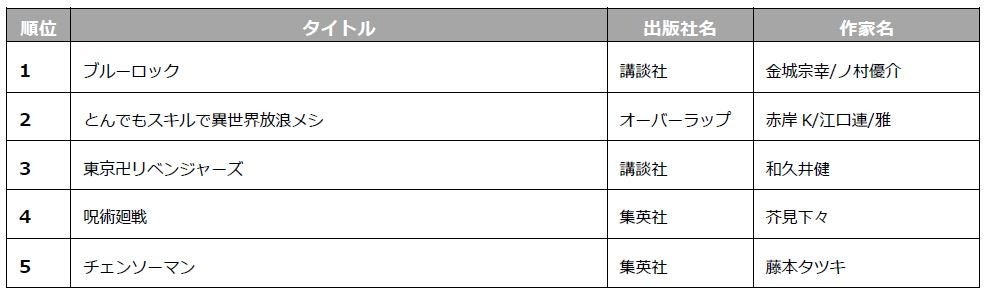 大人気映画の原作コミックや話題のサッカーマンガがランクイン!「コミックシーモア 2023年上半期ランキング」を発表!!