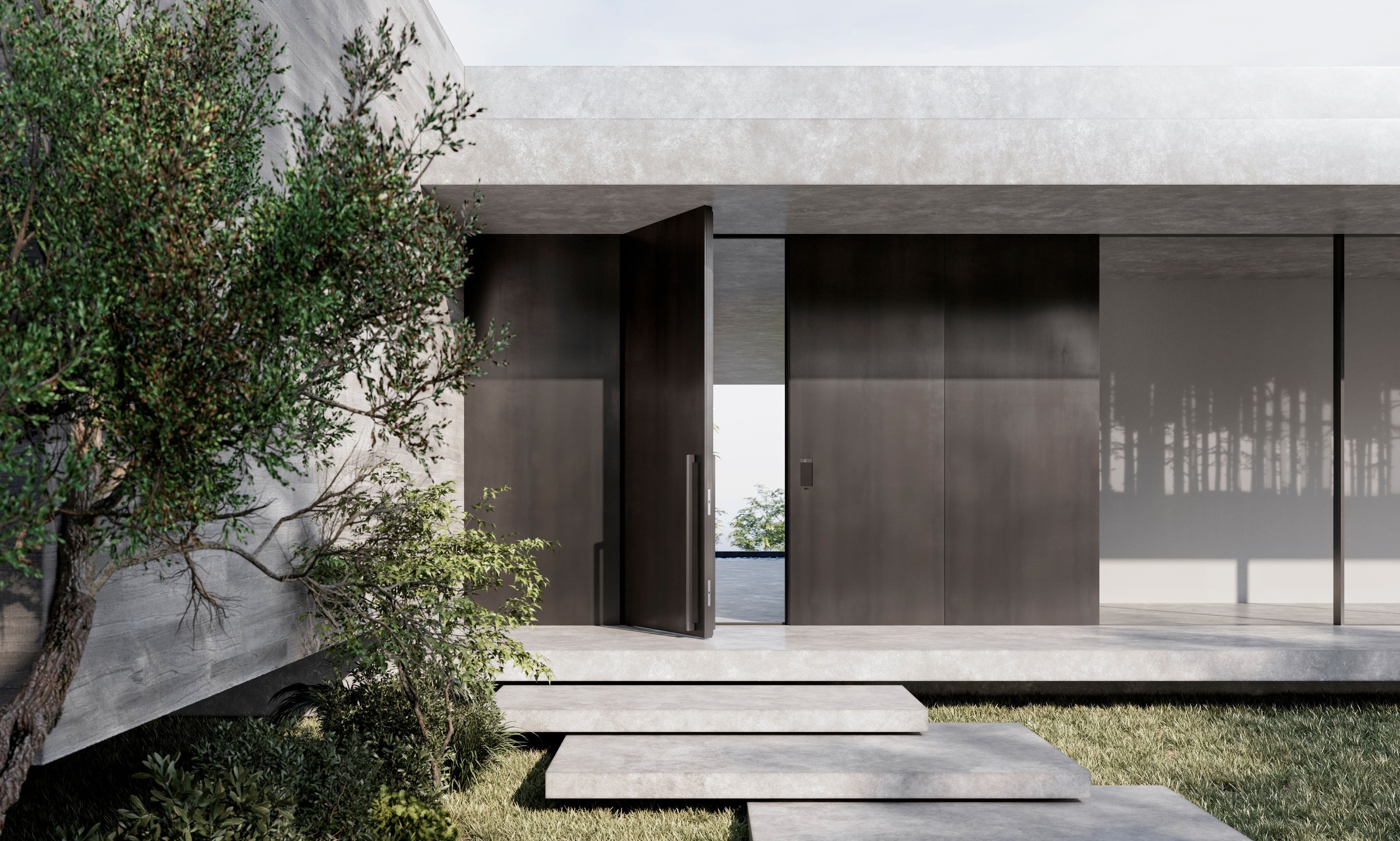 《 DOOR N 》は、高さ最大3mのダイナミックなスケールに、繊細なディテールの美しさを融合。研ぎ澄ますことでますます豊かになるという日本の美意識を礎に、無駄な要素が何もない美しいミニマリスティックデザインを実現しています。表面材には、天然木から味わい深い表情を醸し出す金属面材まで、幅広く対応することで、外壁とドアをシームレスにつなぎ、建築と開口部が一体となったこれまでにない独創的なエントランス空間を演出します。