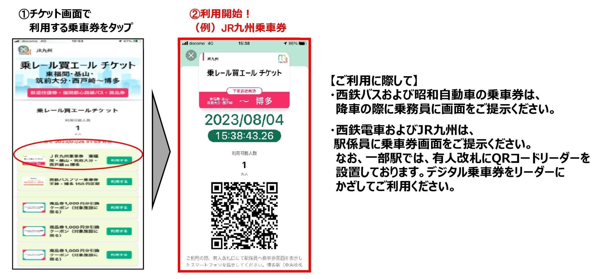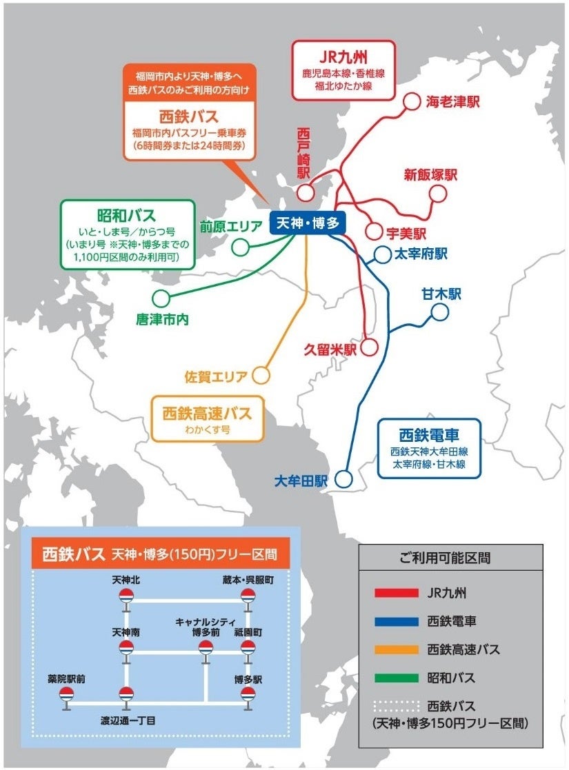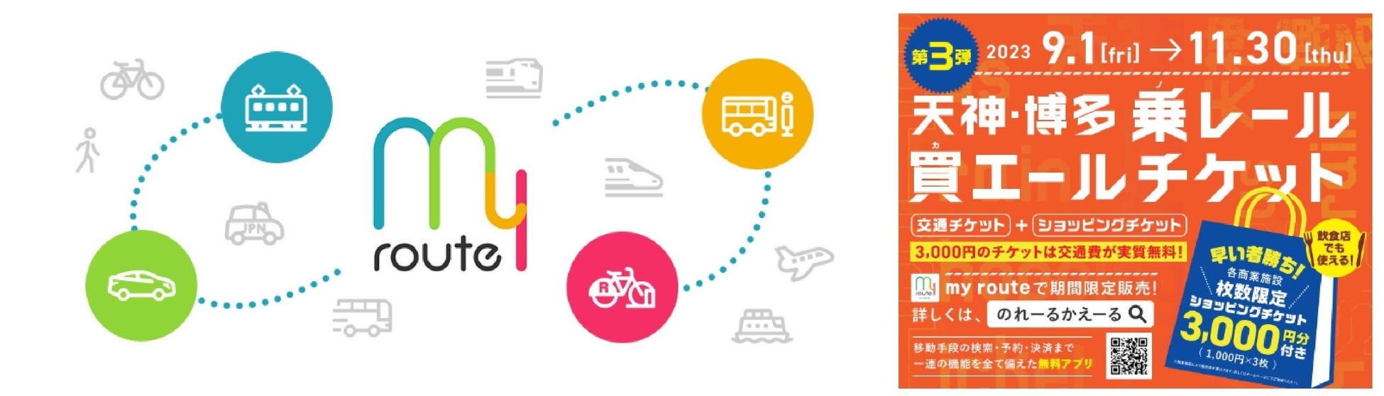 本チケットは、「my route」内で販売を行うため、スマートフォンで手軽にご購入いただけるだけでなく、列車・バスの時刻案内や列車からバスへの乗り換え案内まで、合わせてスムーズに行うことが出来ます。本チケットの販売を通して、天神・博多エリアの賑わいを創出するとともに、経済活性化に貢献してまいります。