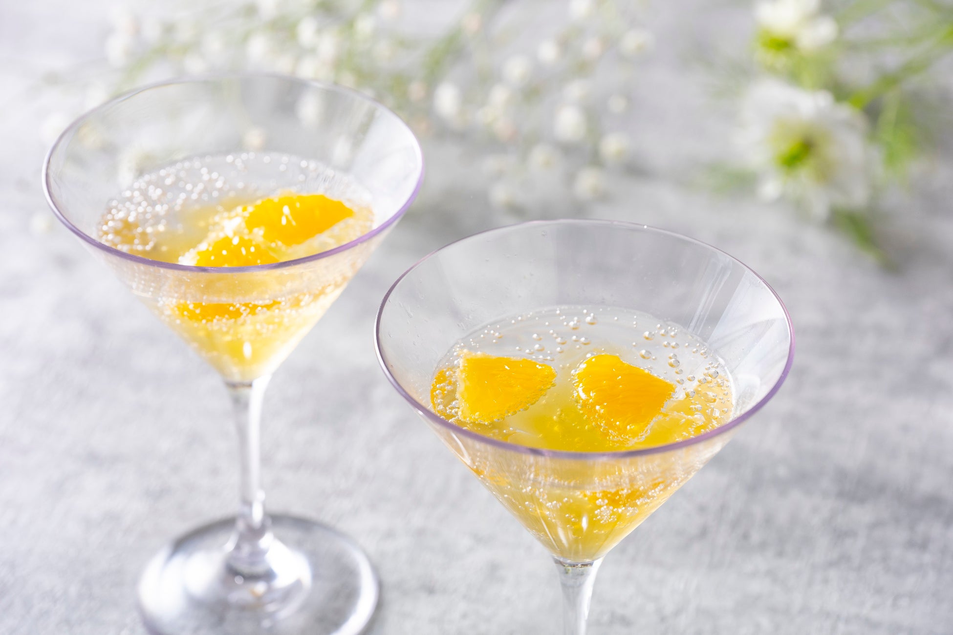 煎茶のゼリーにマンダリンオレンジソースを合わせ、