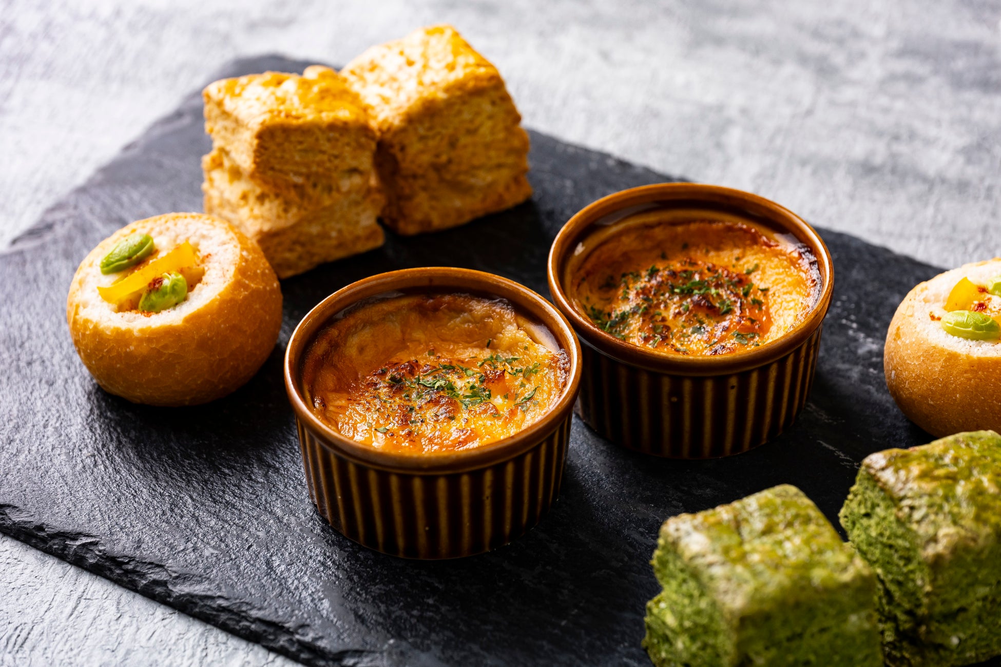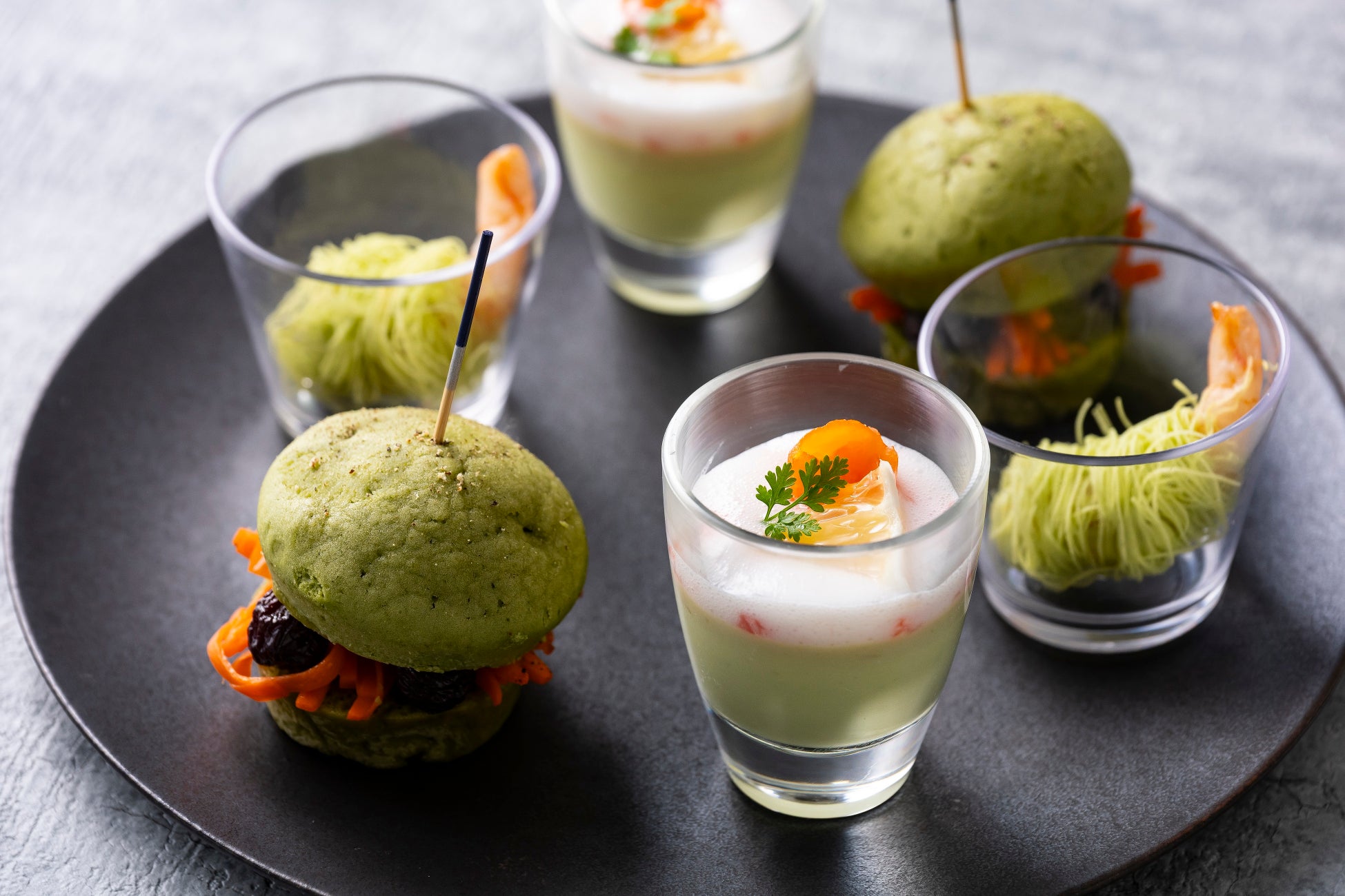 また、抹茶風味のメロンパンに柑橘ドレッシングで和えたキャロットラペとクリームチーズを挟んだ新感覚のサンドイッチをはじめとするシェフこだわりのセイボリーを、本プランに期間限定で登場する福寿園の煎茶やほうじ茶とともにお楽しみいただけます。初夏を感じる、抹茶の香りと柑橘の爽やかな酸味のハーモニーをお届けいたします。