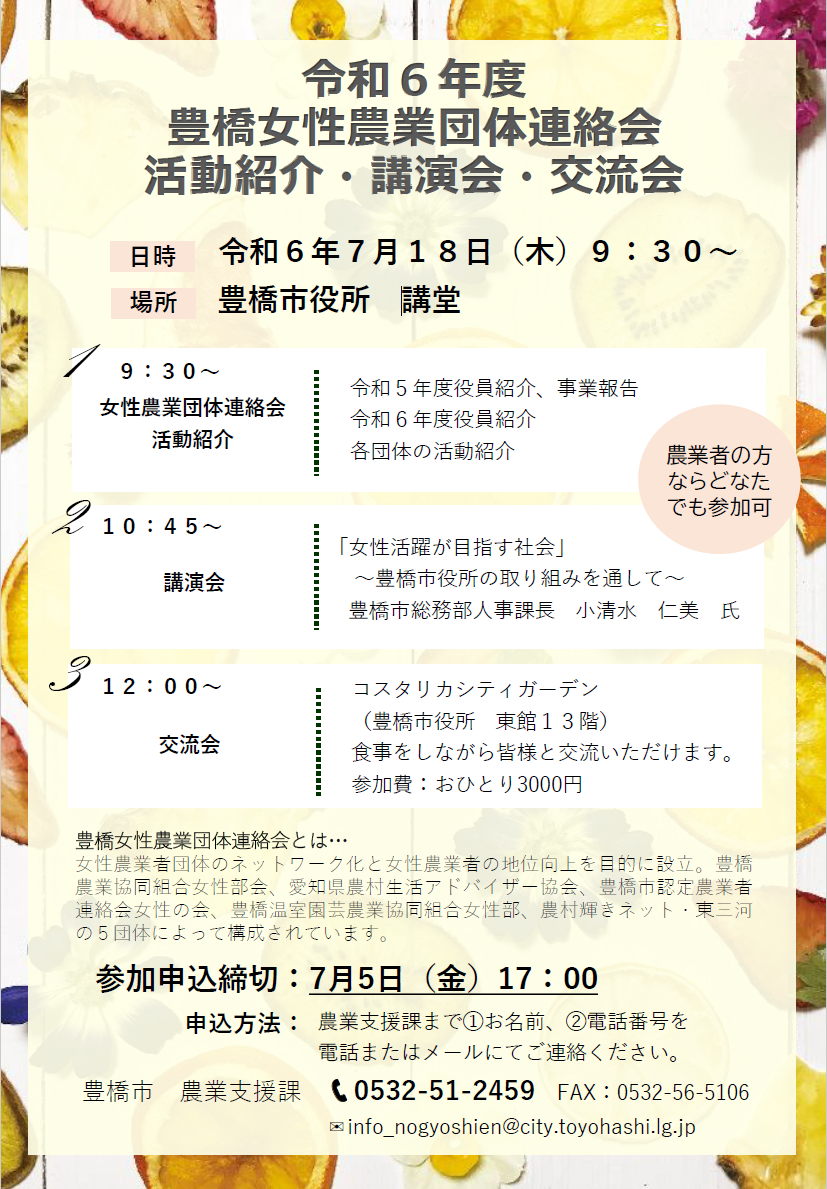 豊橋女性農業団体連絡会は、7月18日(木)に活動紹介・講演会・交流会を開催しました。