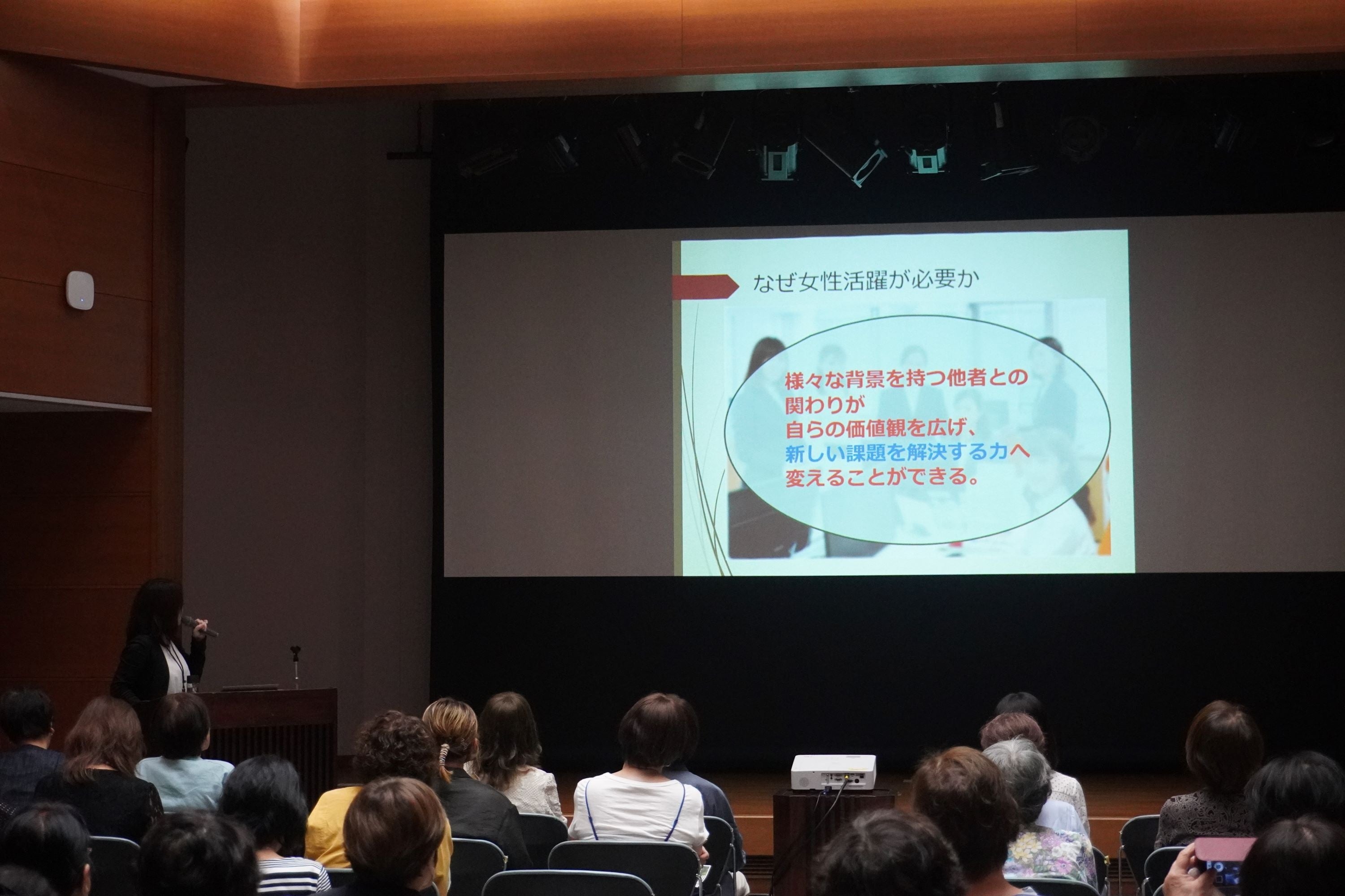 後半では、豊橋市役所が女性も含めたそれぞれの持つ個性を尊重し、能力を発揮するための施策や働き方をサポートする施策を紹介しました。社会での女性活躍の必要性と企業での女性活躍の鍵は、働き方改革にあるという考えも講演のなかで参加者に共有しました。