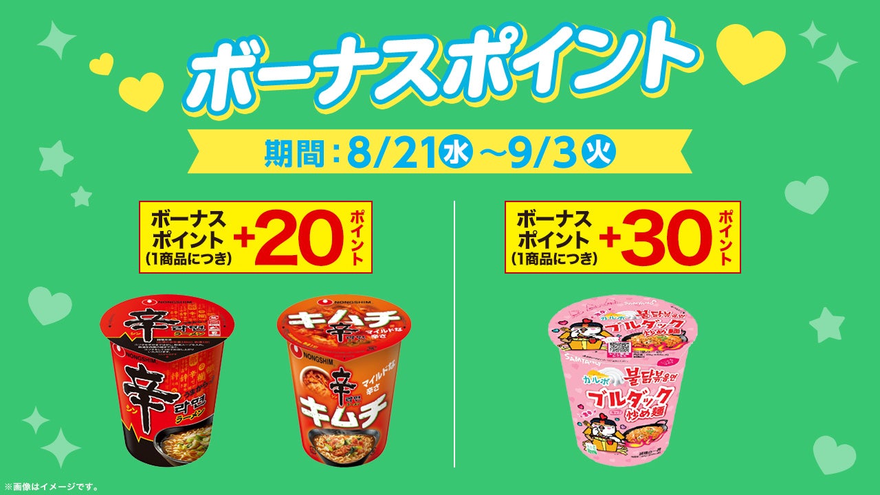 人気の定番韓国フードをおトクに楽しめる!ボーナスポイント企画 期間:8/21(水)~9/3(火)