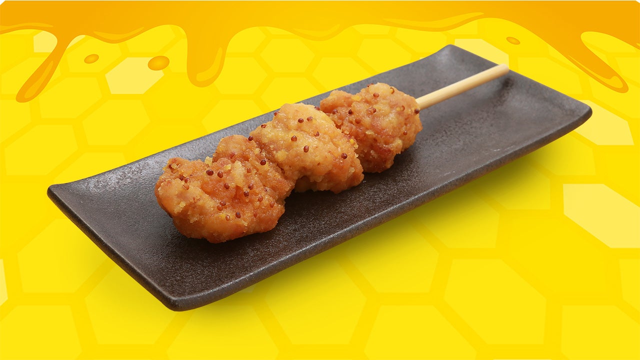 鶏もも肉を使った柔らかくジューシーなから揚げに、ハニーマスタード味のタレを使用しました。マスタードの酸味にハチミツの甘みでコクが加わり、まろやかな味わいに仕上げました。