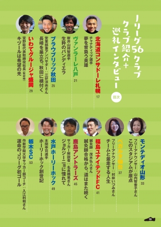平畠啓史が実際に日本全国にある56クラブを周って、北は北海道、南は沖縄まで、選手や監督、サポーターはもちろん、ライター、うどん屋さん、アナウンサー、漁師まで、各クラブゆかりの方々へ直接インタビューを敢行。