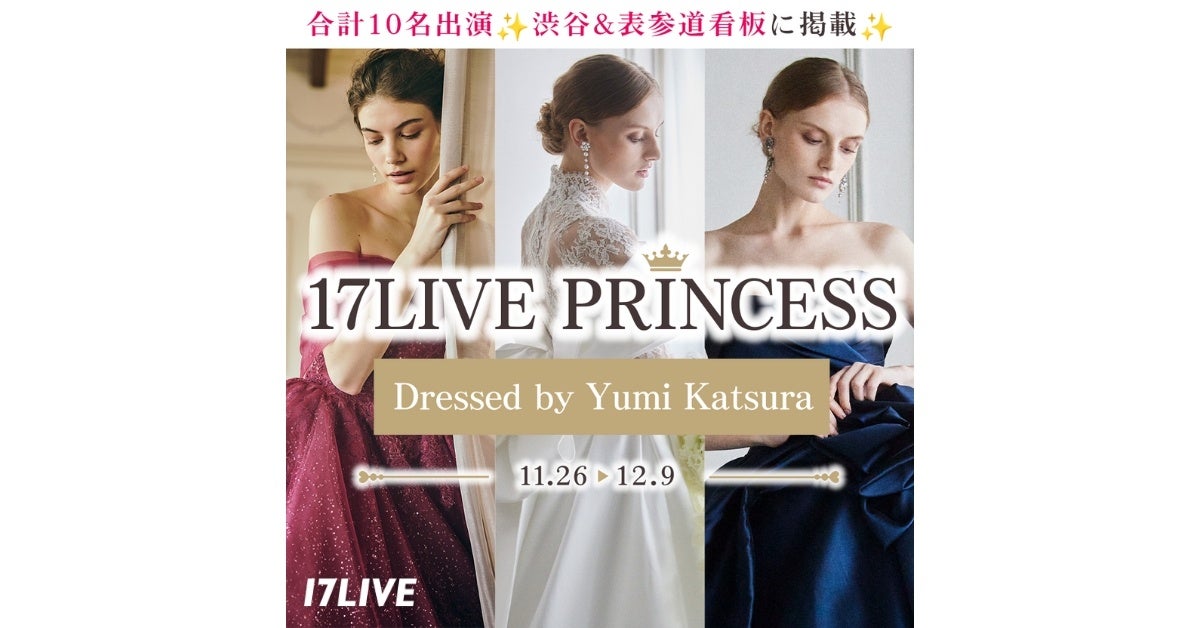 人気ドレスを着用し、渋谷駅&表参道駅への看板掲出を懸けたイベント、『17LIVE PRINCESS Dressed by Yumi Katsura』本日より開催