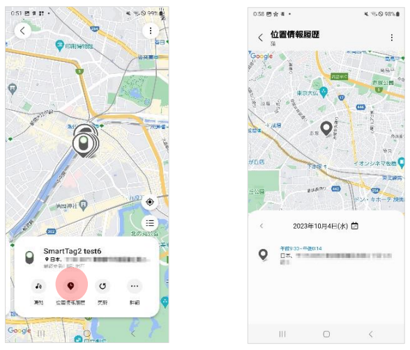 ③左から2番目の「位置情報履歴」を選択すると、最後に検知した場所が表示されます