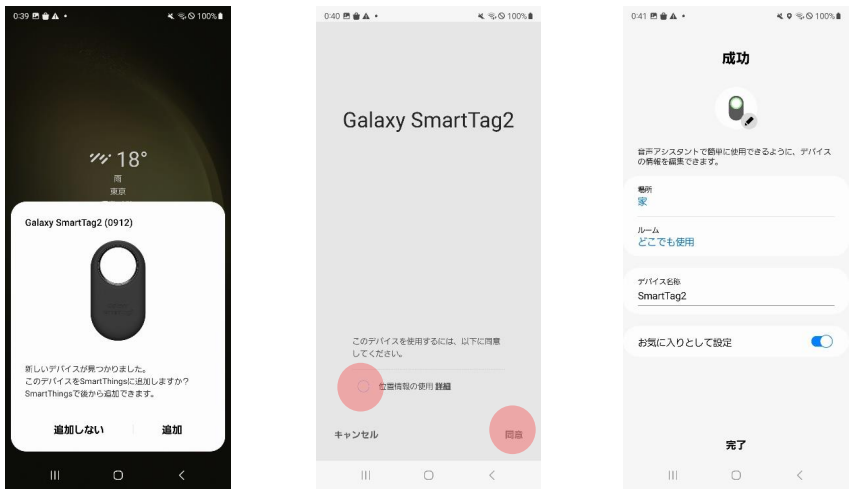 ⑤「Galaxy SmartTag2」の中央にあるボタンを押すと登録完了