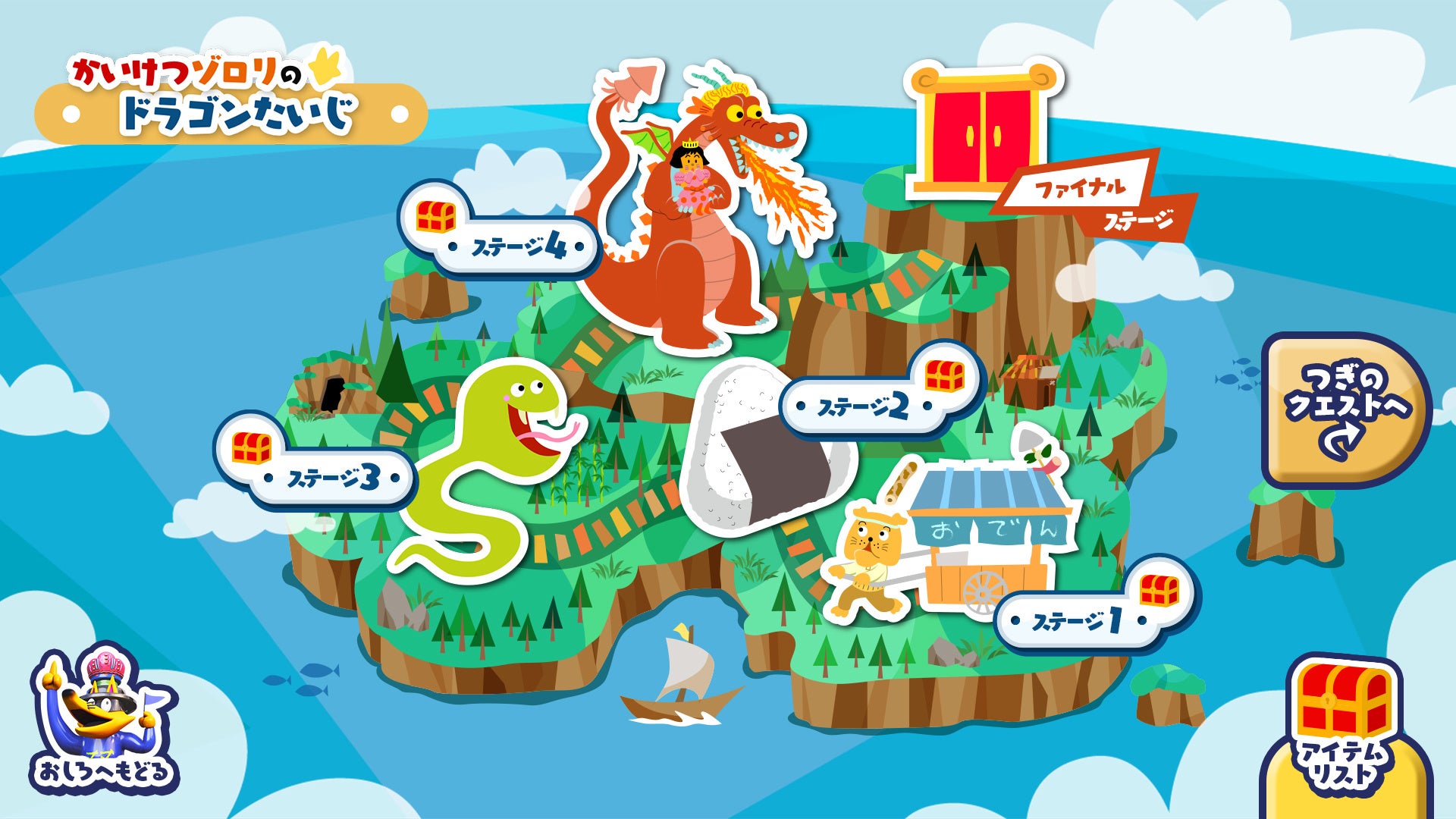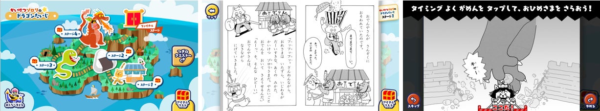 <リーディングクエスト>とは、『かいけつゾロリ』の電子書籍を読みながら、気になるところをタップしたり、ミニゲームをクリアすることで物語が進んでいく、デジタル時代の新しい読書体験コンテンツ!あちこちに遊べる仕掛けが施されたゾロリの原作本の魅力が、さらに進化。めいろ、パズル、タイミングゲームなどに加え、デジタルならではの演出で自分もゾロリと一緒に冒険している没入感を得ながら、オリジナルストーリーが展開されていく。第1ステージは、1987年に発売された記念すべき第1巻『かいけつゾロリのドラゴンたいじ』が舞台。新しいステージは毎月追加されていく予定。ゾロリたちと一緒に大冒険へ出かけよう!