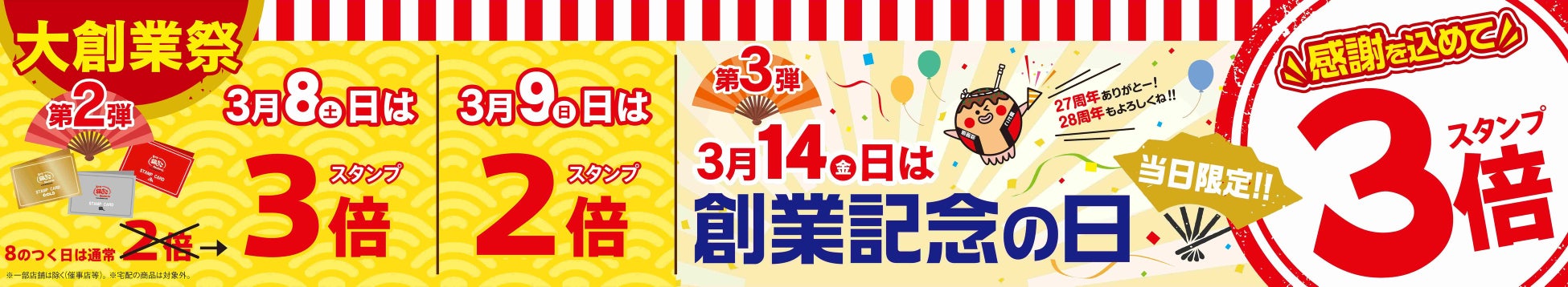 また、築地銀だこ店舗(一部店舗を除く)で開催される 『大創業祭』 期間中の、3月8日・9日・14日に “ぜったいお得な回数券” を 「PayPay」 でご購入いいただくと、 「PayPayポイント」 5%付与に加え、 「銀だこスタンプカード https://www.gindaco.com/stampcard/ 」 のスタンプが2倍!、3倍!!もらえて “トリプルで超お得”!