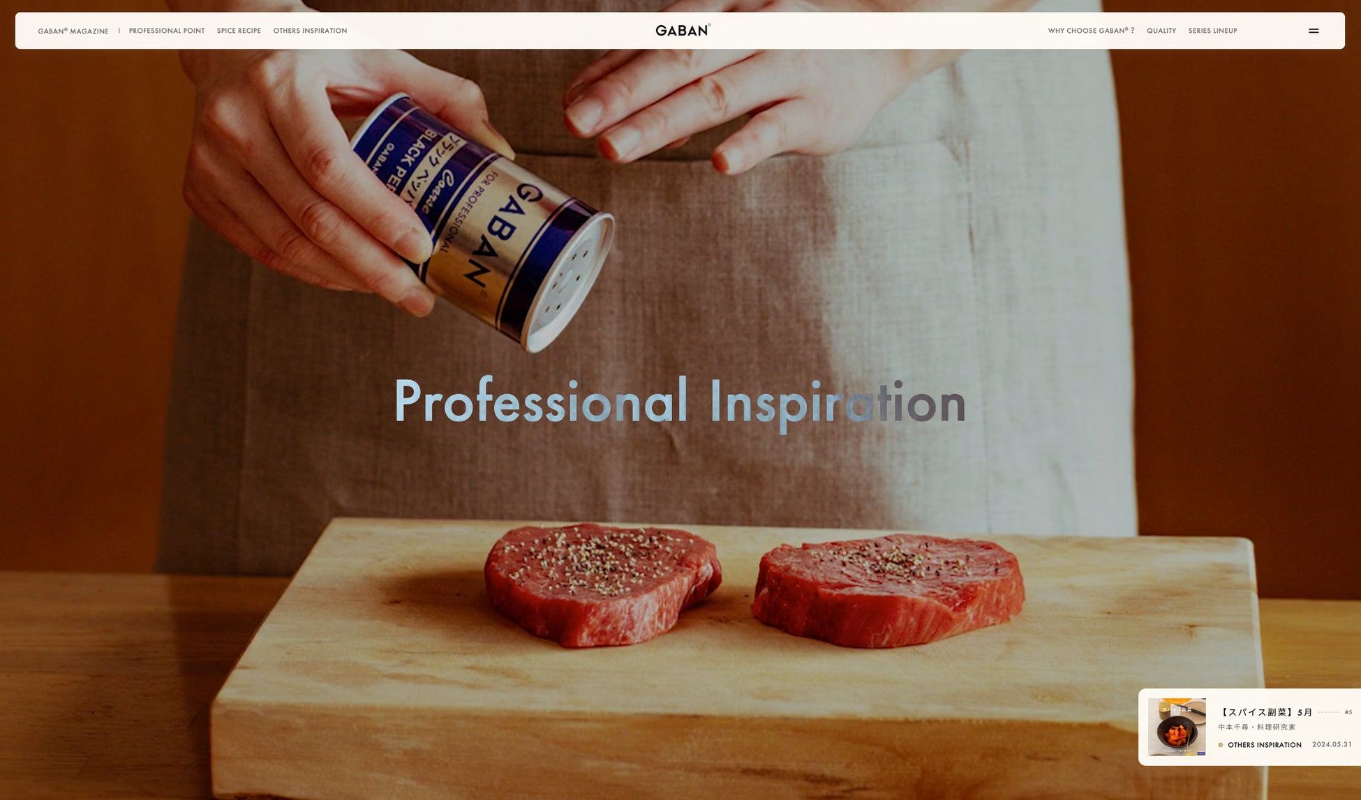 そこで、GABAN®の「プロに選ばれる、品質の高いスパイス」というイメージを通じて、料理にこだわる人の役に立ち、喜んでいただけるような情報を発信することで、より豊かで楽しい食生活の後押しをしたいと考え、Instagram・Webサイト開設に至りました。