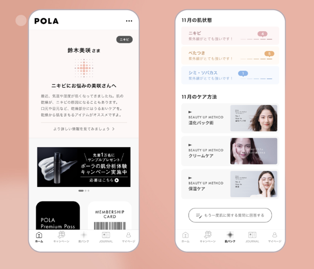 ポーラがこれまでお預かりしてきた2020万件の肌データをもとに、肌悩み・季節・お住まいの地域等にあわせた、あなただけの特別な美容情報をお届けする新サービスをスタートします。