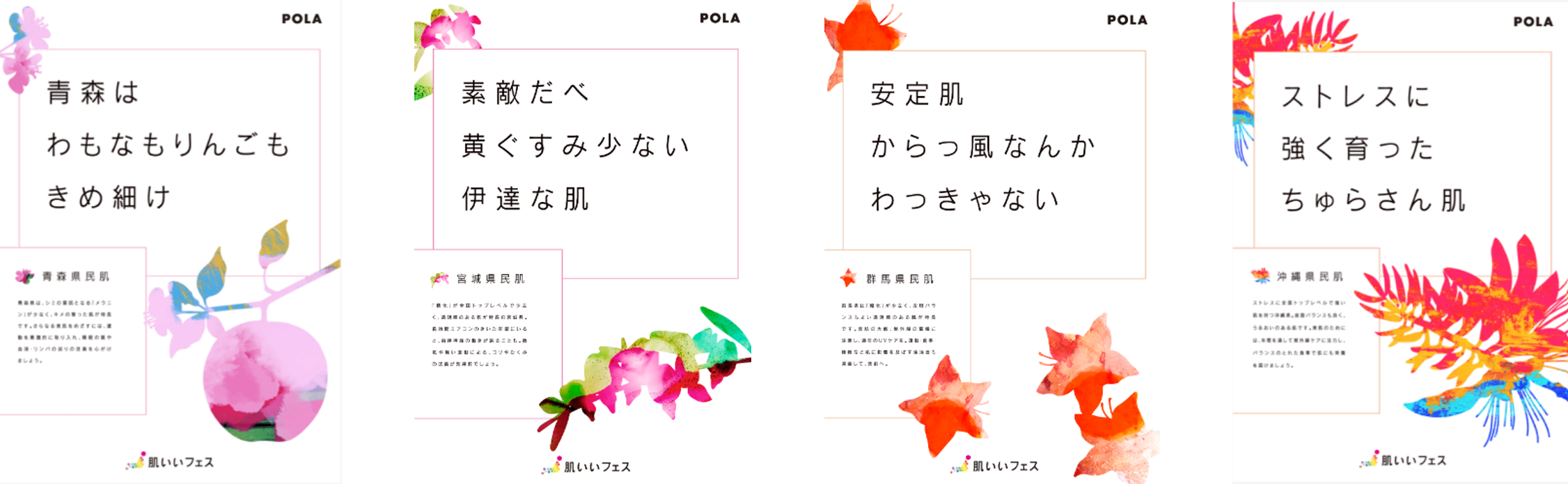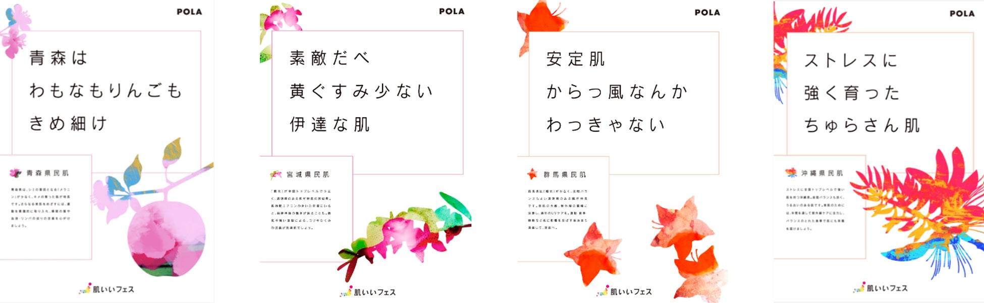 そのデータを、より楽しく知ってもらうことを目的に、47都道府県毎に、なじみのある地元の言葉を用いた『肌いい 5・7・5』を作成し、それぞれの県の花のデザインと共に特設サイトや、全国のイベントで紹介しています。