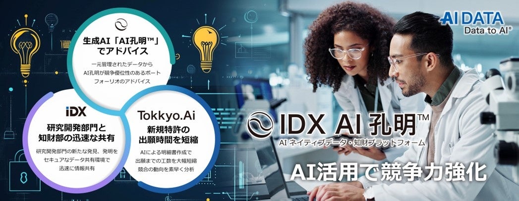 企業データとAIの利活用カンパニー、AIデータ株式会社(本社:東京都港区、代表取締役社長 佐々木隆仁 以下AIデータ社)は、R&D(研究開発)部門および知的財産(IP)管理部門向けに、AIを活用した統合プラットフォームの提供を開始しました。本ソリューションは、研究開発の成果を迅速に知財へとつなげ、特許戦略の最適化、技術トレンドの予測、知財の収益化を加速する ことで、企業の競争力向上に貢献します。