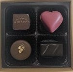 【内容】ビターガナッシュ、パッションフルーツ風味ガナッシュ、プラリネクリーム、コーヒー風味ショコラの4種類の味を楽しめるショコラの詰め合わせ。