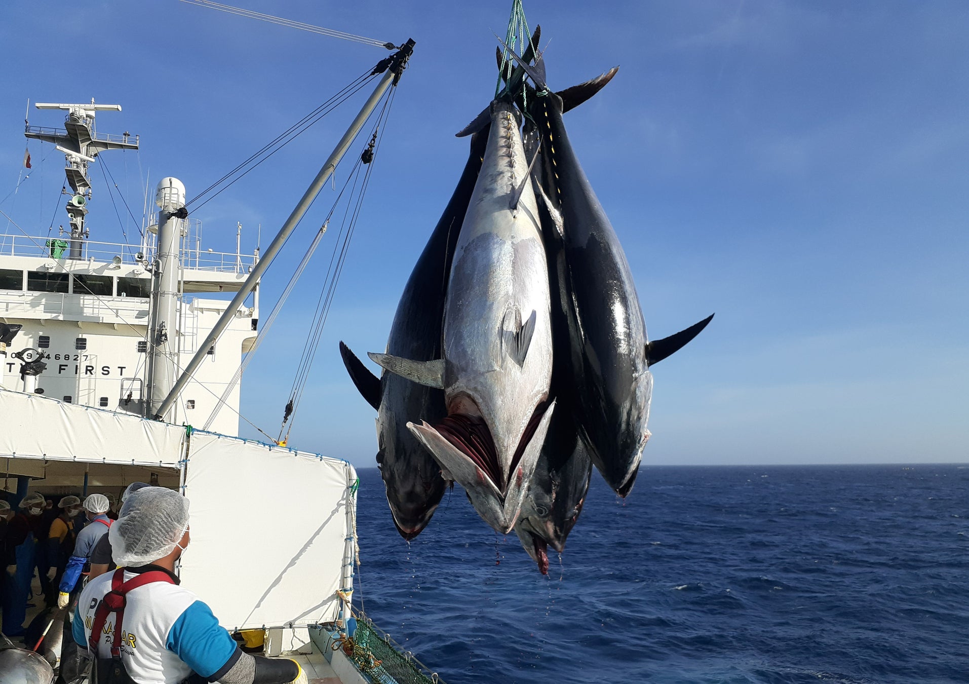 生け簀から取り上げられた本鮪はすぐに加工船に運ばれます。その後素早く解体され、船内の約マイナス50度の冷凍庫にて保管、そのまま日本に運ばれます。