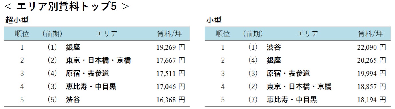 ・小型の賃料は、全5エリアで12年下期以降最高値を更新。