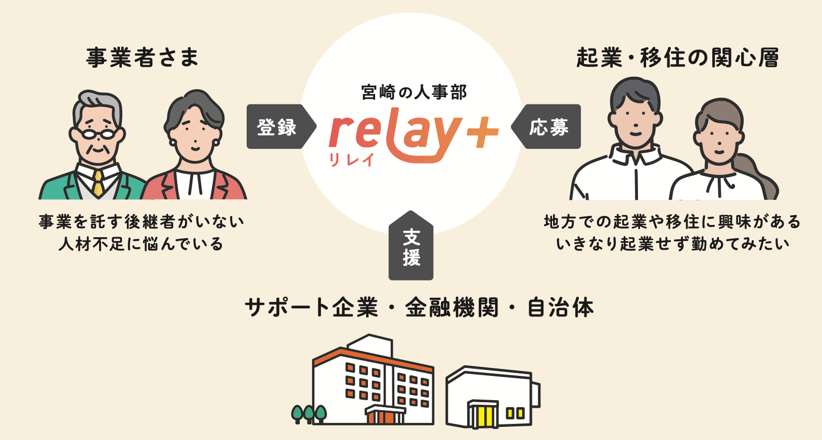 私達は事業承継と同様に、人材確保・育成・定着の分野においても「オープン」であることが、持続可能な企業経営と地域社会の再構築に向けた鍵になると考えています。「relay(リレイ)」で培った事業承継のノウハウと実績を活かしながら、「宮崎の人事部 relay+(リレイプラス)」は地域に開かれた人材循環の新しいモデルの構築に取り組んでまいります。