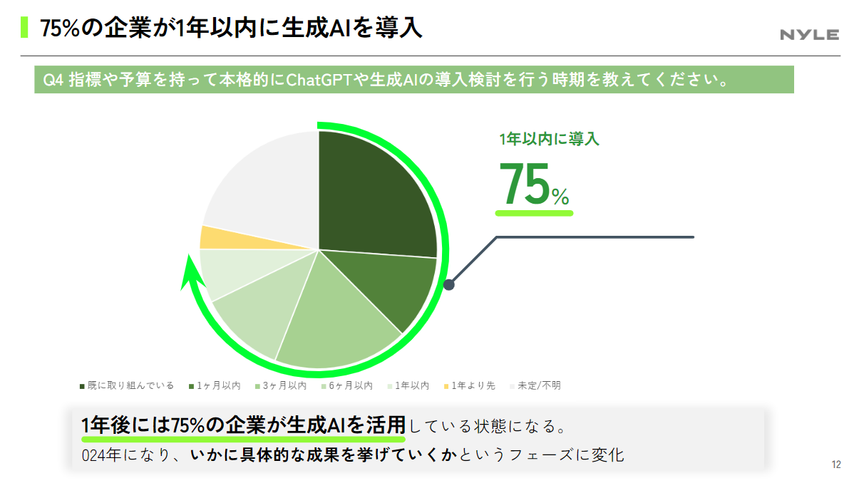 75%の企業が、生成AIを1年以内に導入予定