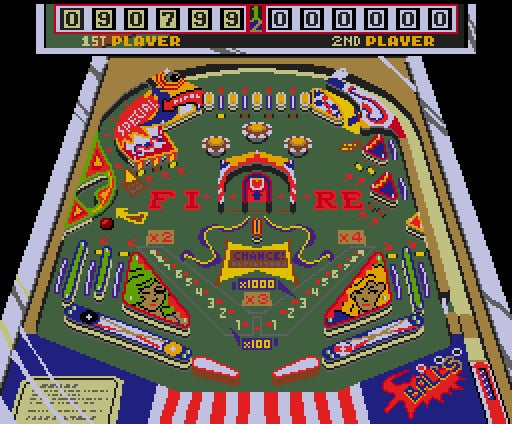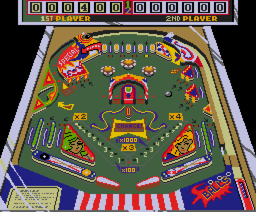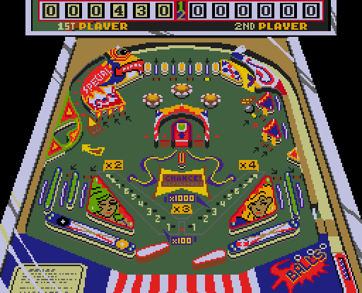 本作は1988年にリリースされたピンボールゲームで、ふたつのフリッパーでボールをはじき、バンパーやターゲットに命中させて得点を稼ぐ、王道のゲームデザインが特徴です。状況に応じて台を傾けたり揺すったりする操作も可能で、プレイの幅を広げています。