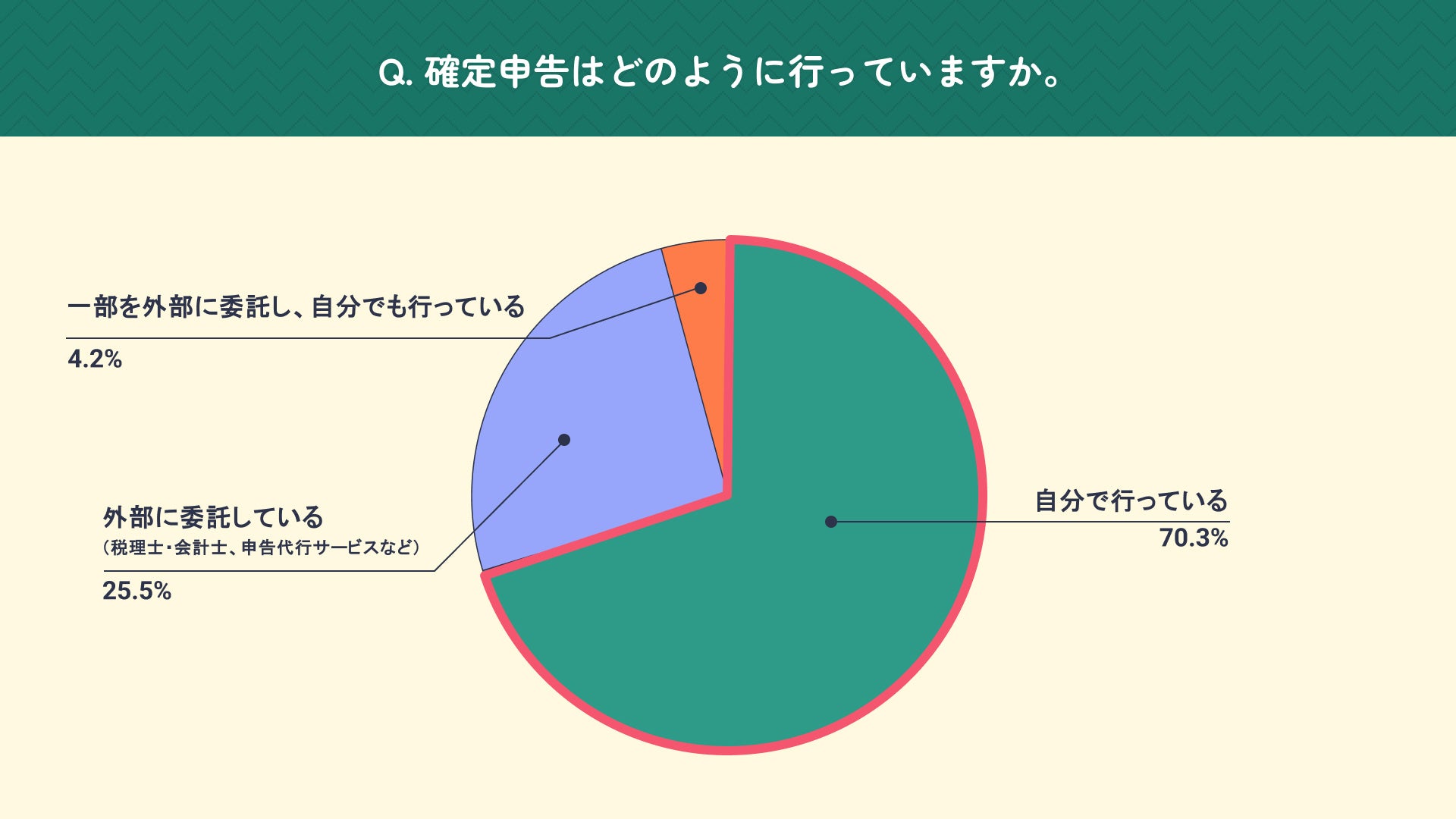 また、確定申告をしている人の70.3%が自分で行っていることが分かりました。