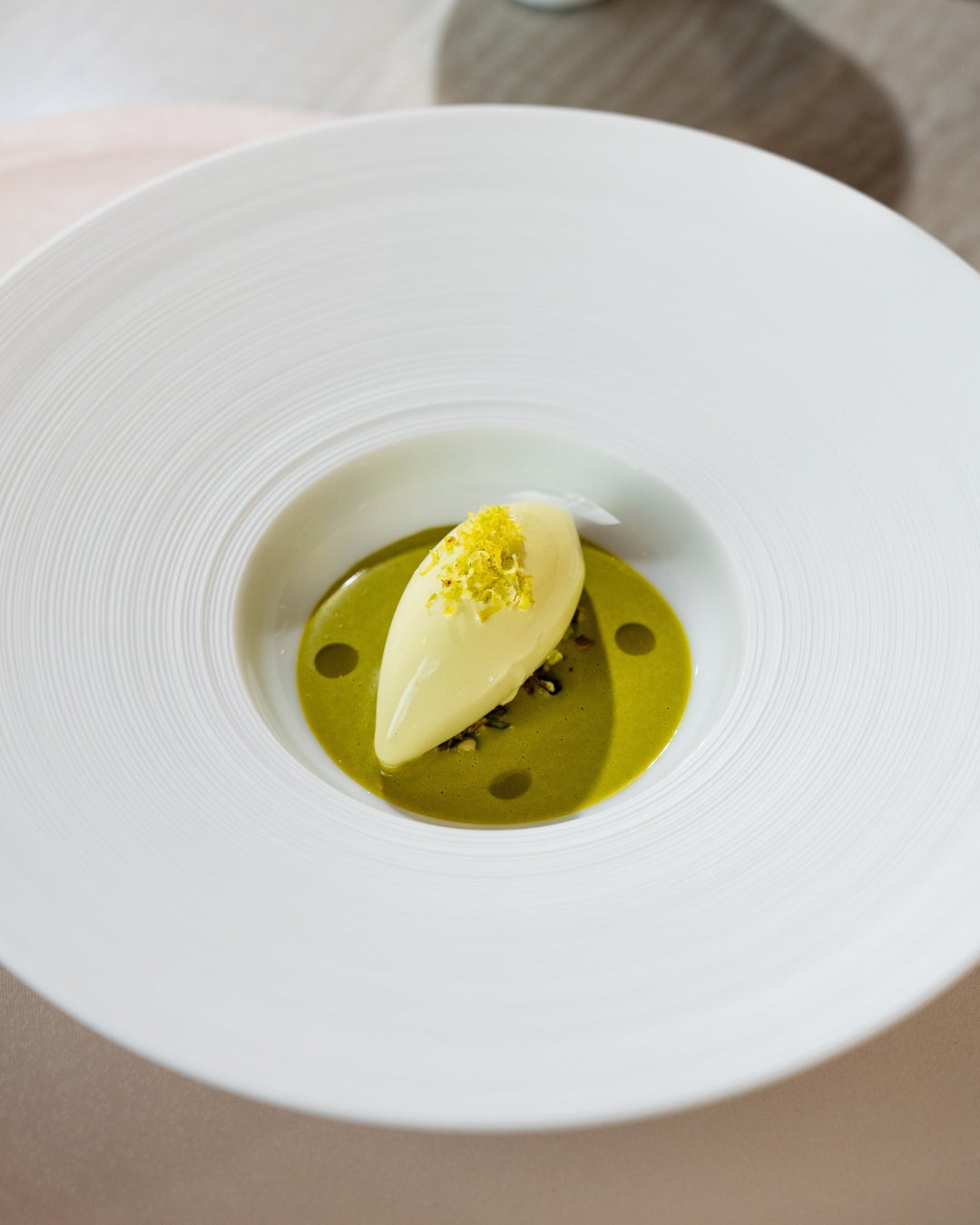 風味豊かなイタリアのピスタチオを使用したジェラート。ピスタチオオイルを合わせた、柑橘が香るピスタチオのソースと一緒にお召し上がりください。ローストしたピスタチオが食感のアクセントになり、一つの食材を様々なテクスチャーでお楽しみいただけます。