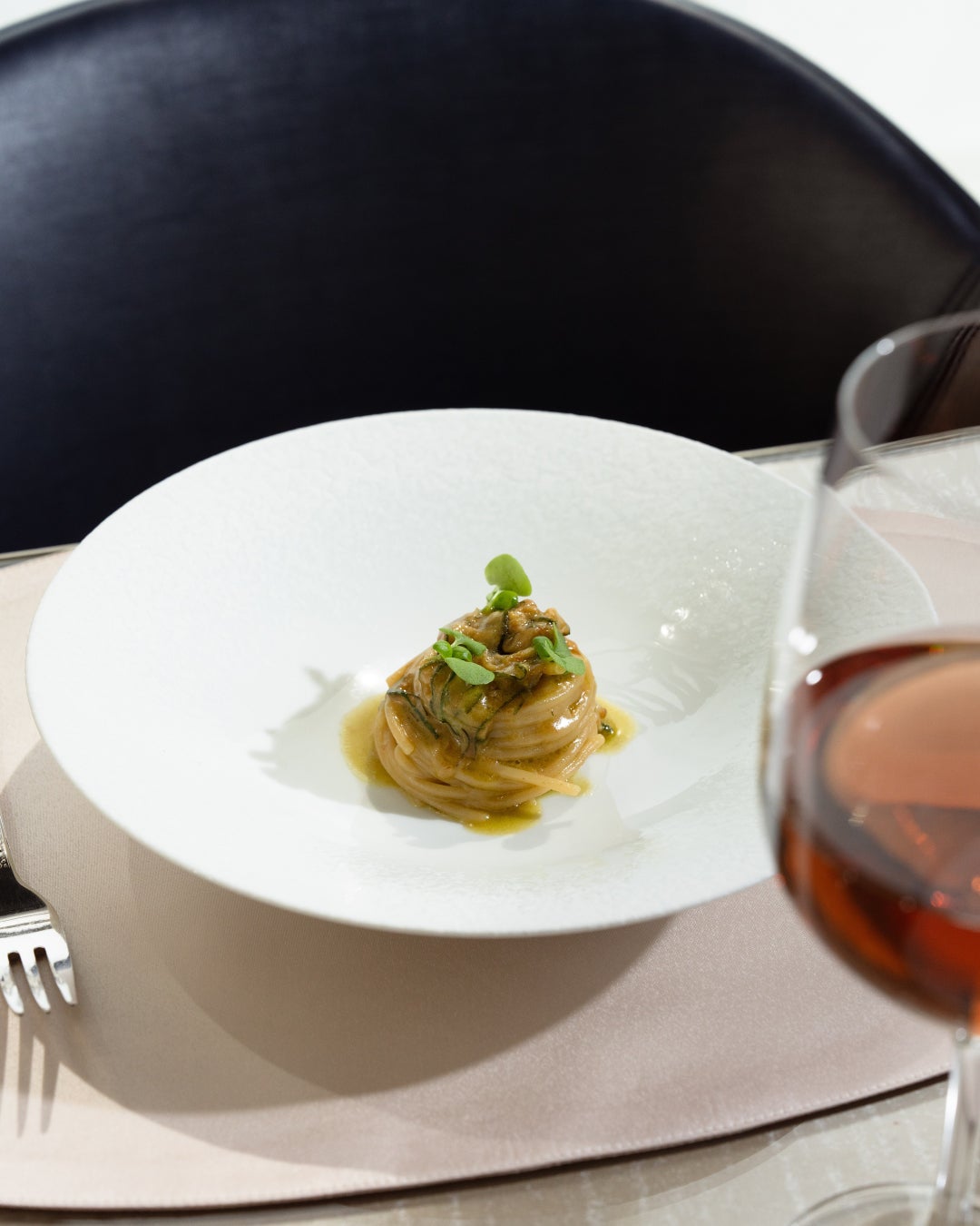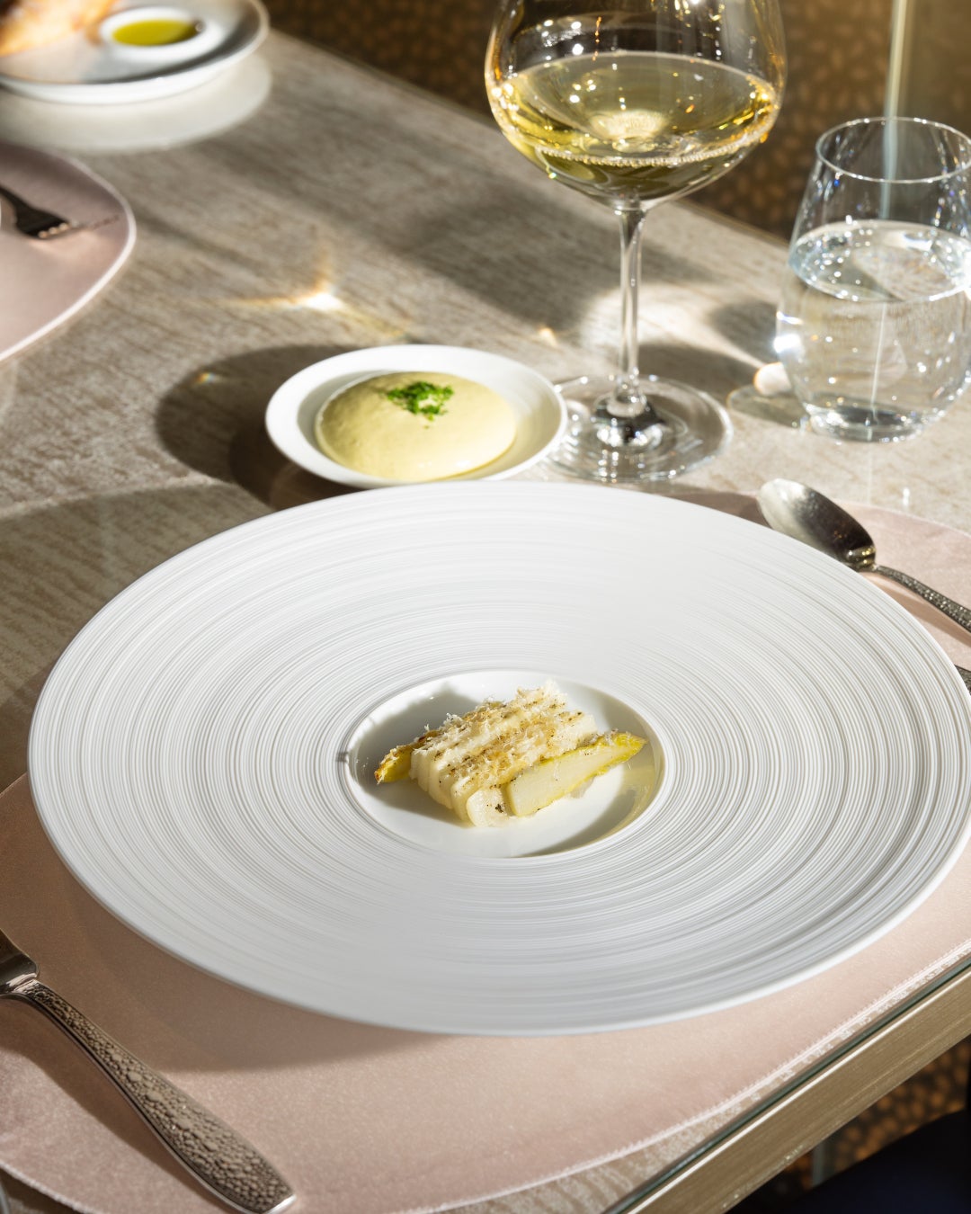 2024年の春シーズンは、イタリアから取り寄せる、甘味の強い旬のホワイトアスパラガスが主役の料理をはじめ、イタリア ネラーノ村発祥のシンプルなズッキーニのパスタ料理「スパゲッティアッラネラーノ」をアルマーニ流に仕上げた一皿、風味豊かなピスタチオや蜂蜜が主役のデザートなど、メインとなる食材に一層のフォーカスを当て個性を引き立たせた、クリエイティビティ溢れる料理を提供します。