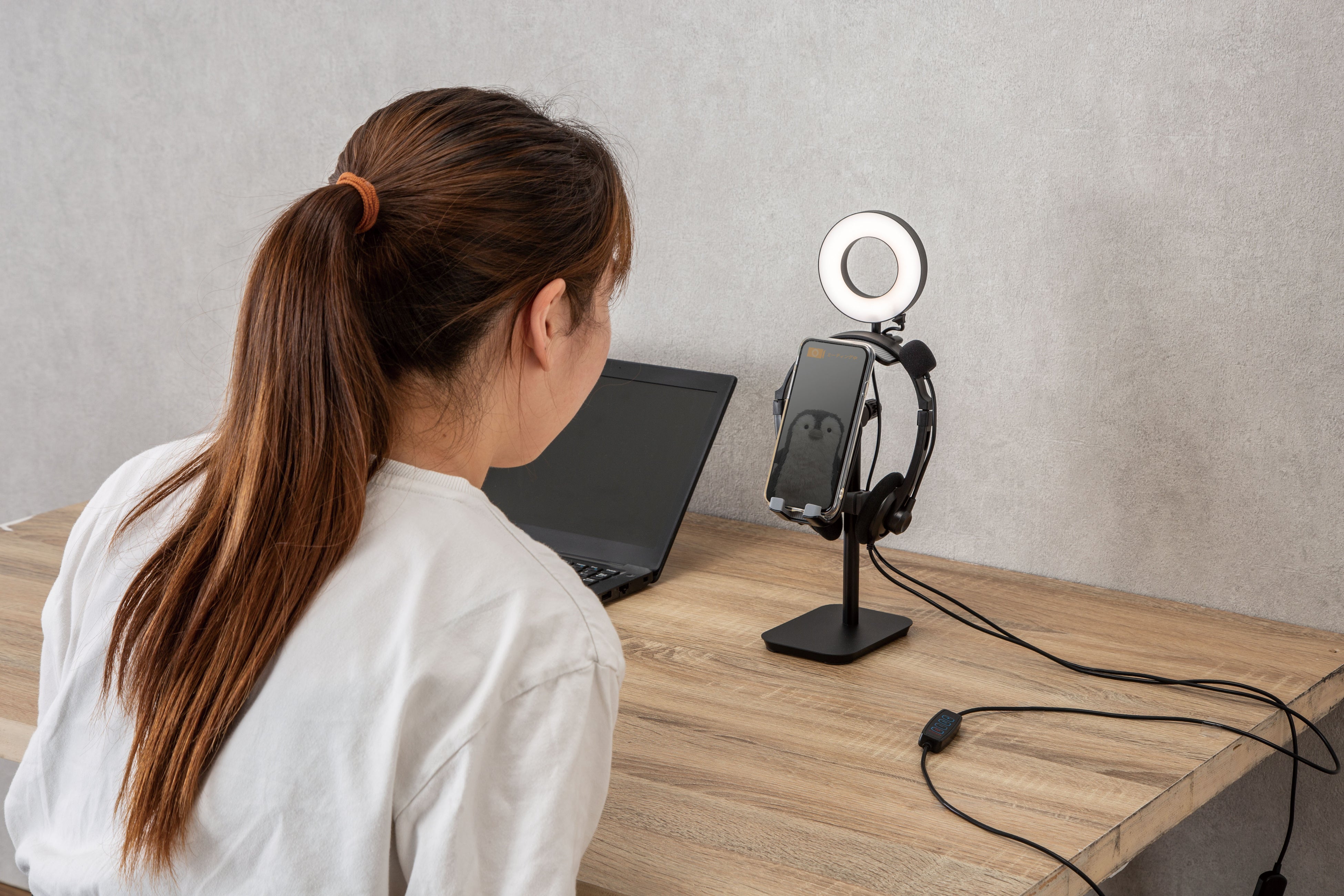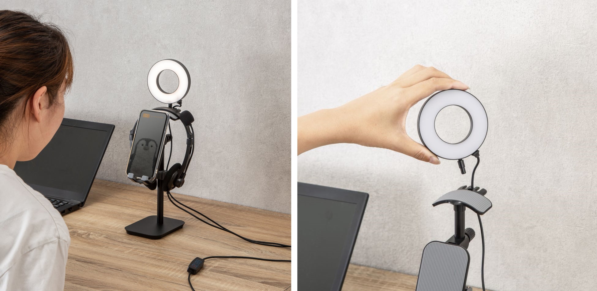 【ニトリ】オンライン会議や自撮りに最適!調光・調色できる「LEDライト付きスマホ&ヘッドフォンスタンド」が新登場
