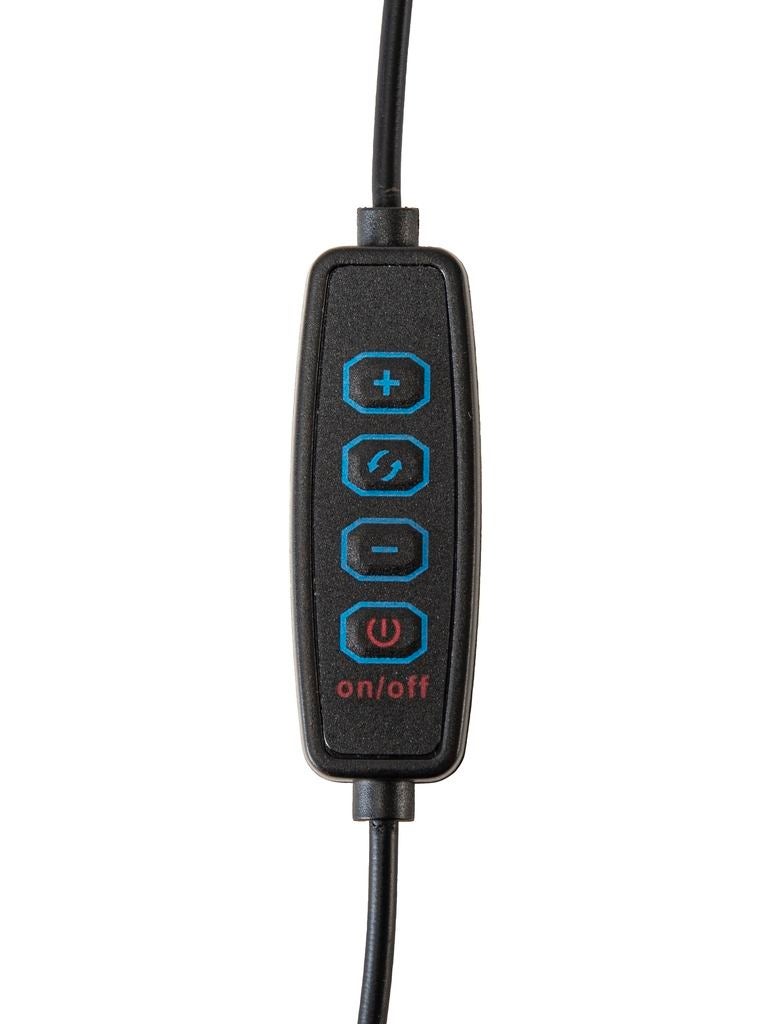 手元のスイッチで簡単に調光と3段階の調色ができるリング状のLEDライトによって、顔の映り具合をコントロールしていただけます。