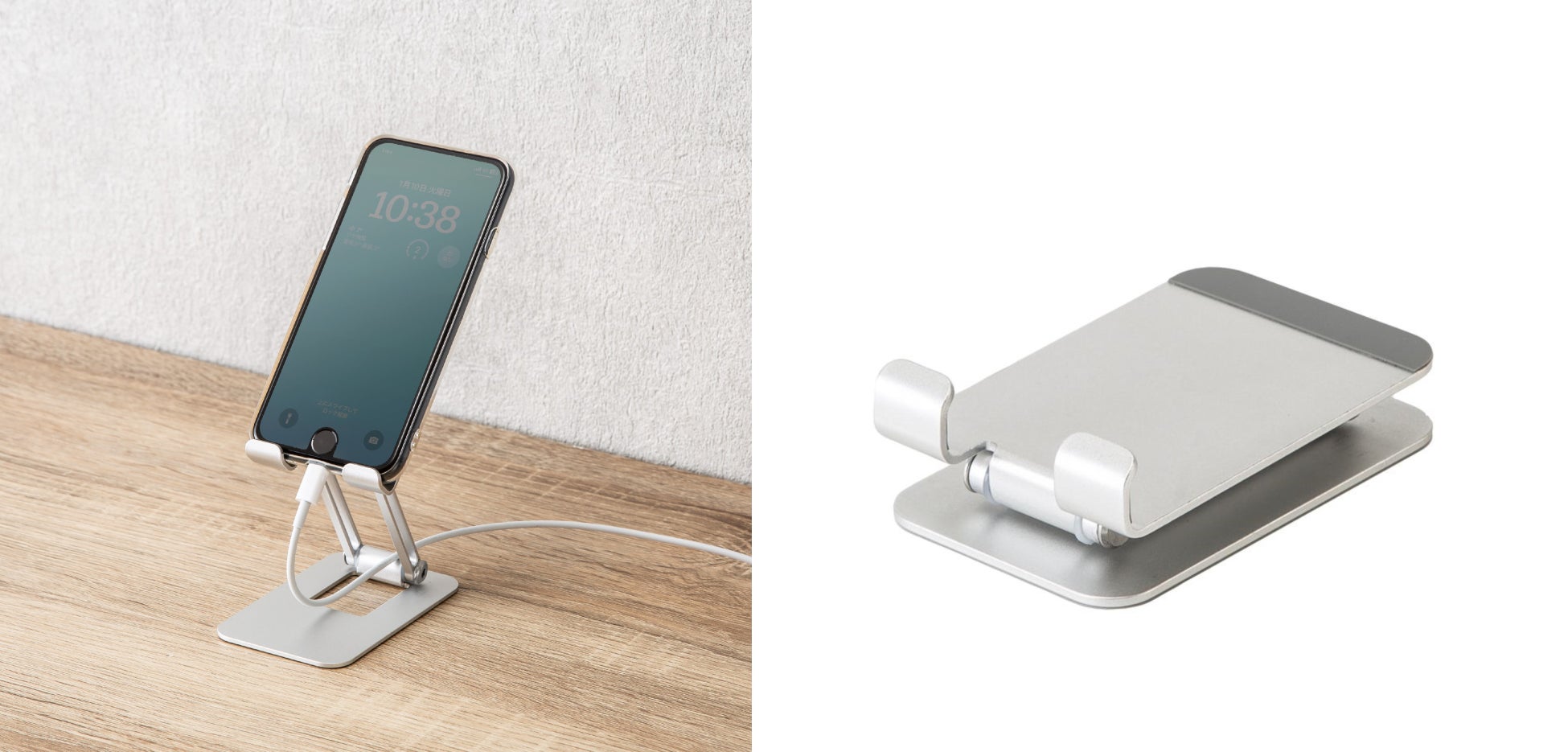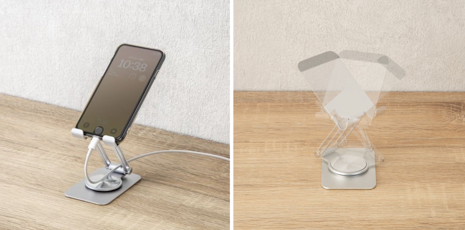 持ち歩きや収納に便利な折りたたみができるスマホスタンドに、回転できるタイプも新登場しました。