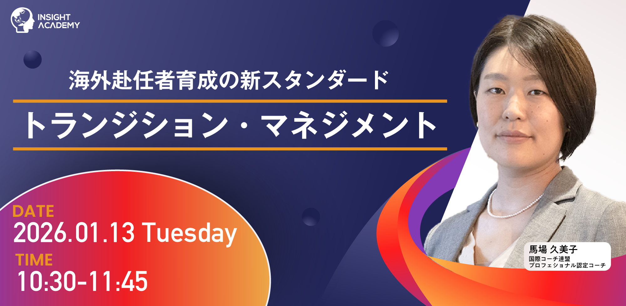 グローバル⼈材育成・研修業を⼿掛けるインサイトアカデミー株式会社(本社:東京都港区新橋、代表:金 珍燮)は、無料webセミナー「<海外赴任者育成の新スタンダード>トランジション・マネジメント」を開催致します。