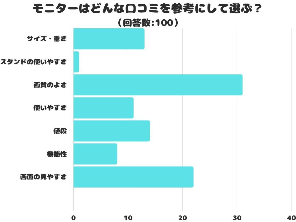 モニターを買うなら、画質の良さや画面の見やすさなどを実際に使った人の口コミを参考にしたい人が多いことが分かります。