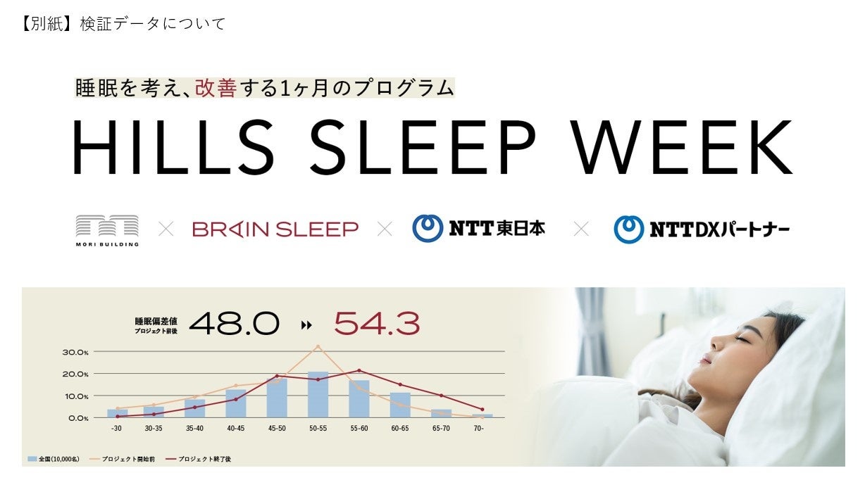 今回、「HILLS SLEEP WEEK」を通じて得られた知見を、企業および自治体における従業員、職員、住民の睡眠改善に役立てる取り組みにつなげてまいります。