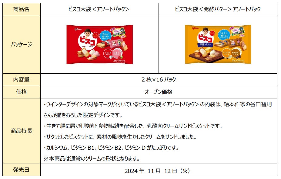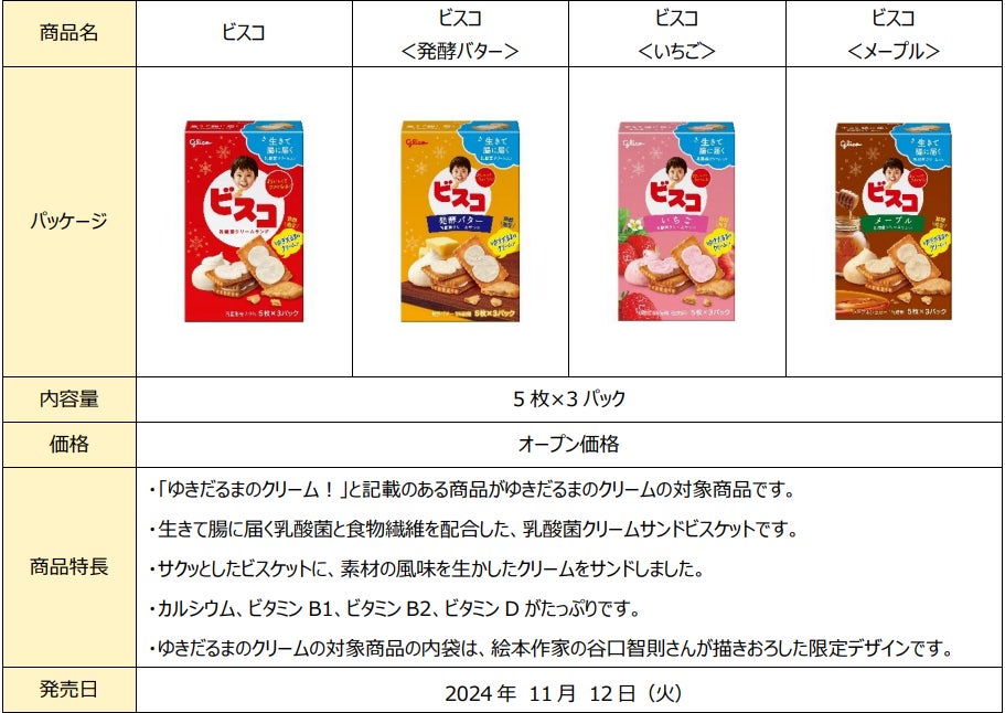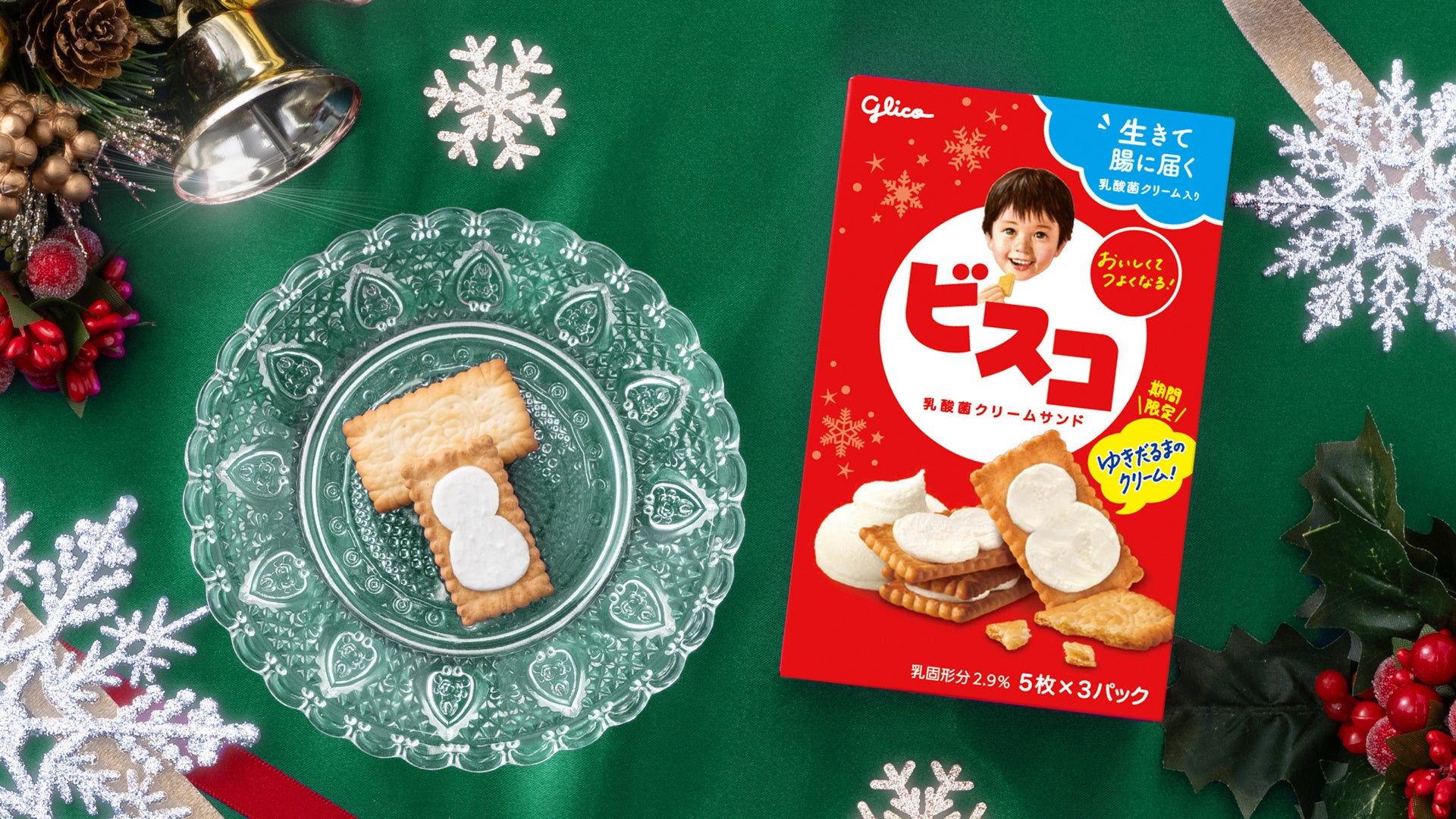 江崎グリコ株式会社は、今年発売91周年を迎えた乳酸菌クリームサンドビスケット「ビスコ」から、クリームの形がゆきだるまになった「ビスコ」を、2024年11月12日(火)より全国にて期間限定で発売します※1。